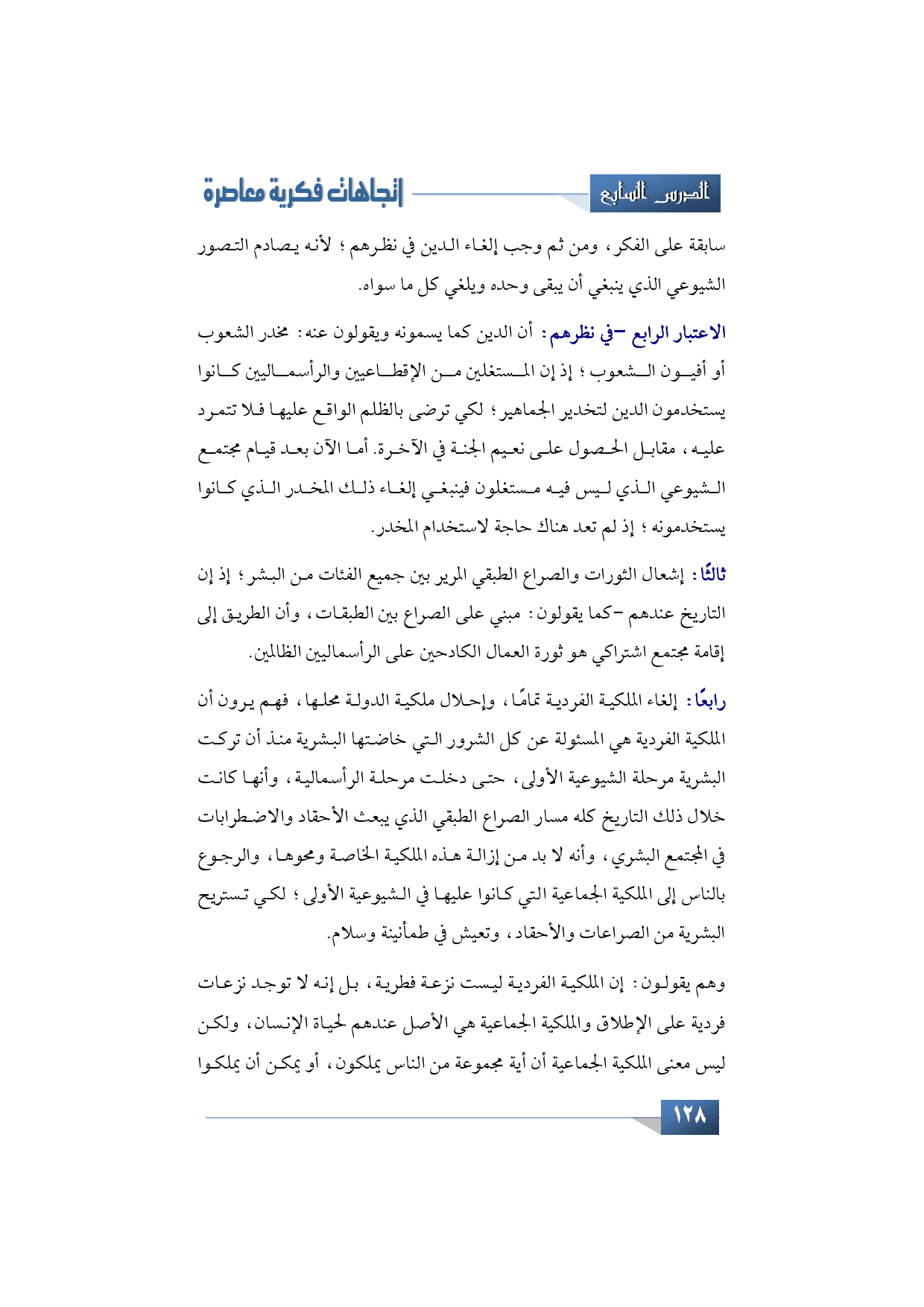 سابقة على الفكر، ومن ثم وجب إلغاء الدين في نظرهم؛ لأنه يصادم التصور الشيوعي الذي ينبغي أن يبقى وحده ويلغي كل ما سواه.