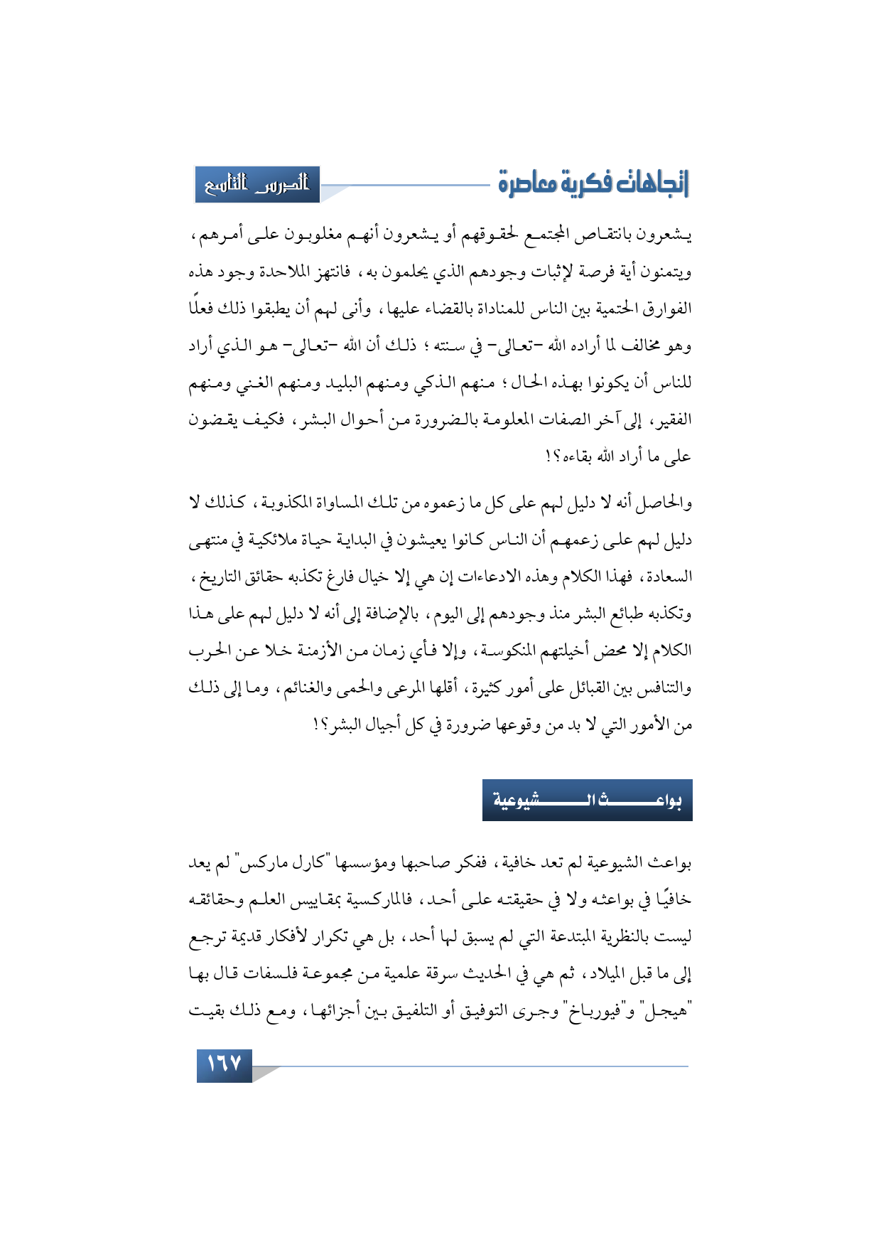 يشعرون بانتقاص المجتمع لحقوقهم أو يشعرون أنهم مغلوبون على أمرهم، ويتمنون أي فرصة لإثبات وجودهم الذي يحلمون به، فانتهز الملاحدة وجود هذه الفوارق الحتمية بين الناس للمناداة بالقضاء عليها، وأنى لهم أن يطبقوا ذلك فعلًا وهو مخالف لما أراده الله تعالى في سنته؛ ذلك أن الله تعالى هو الذي أراد للناس أن يكونوا بهذه الحال؛ منهم الذكي ومنهم البليد ومنهم الغني ومنهم الفقير، إلى آخر الصفات المعلومة بالضرورة من أحوال البشر، فكيف يقضون على ما أراد الله بقاءه؟!