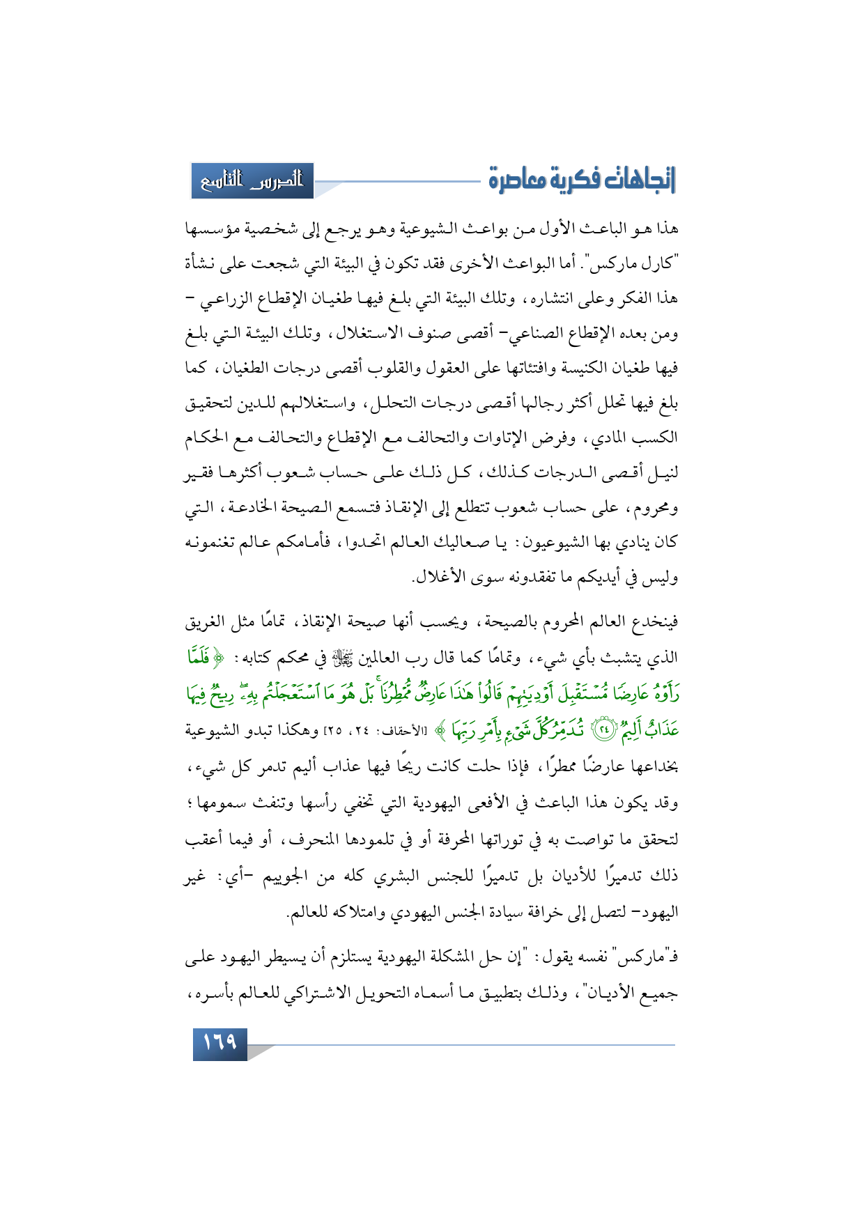 فـ"ماركس" نفسه يقول: "إن حل المشكلة اليهودية يستلزم أن يسيطر اليهود على جميع الأديان"، وذلك بتطبيق ما أسماه التحويل الاشتراكي للعالم بأسره،