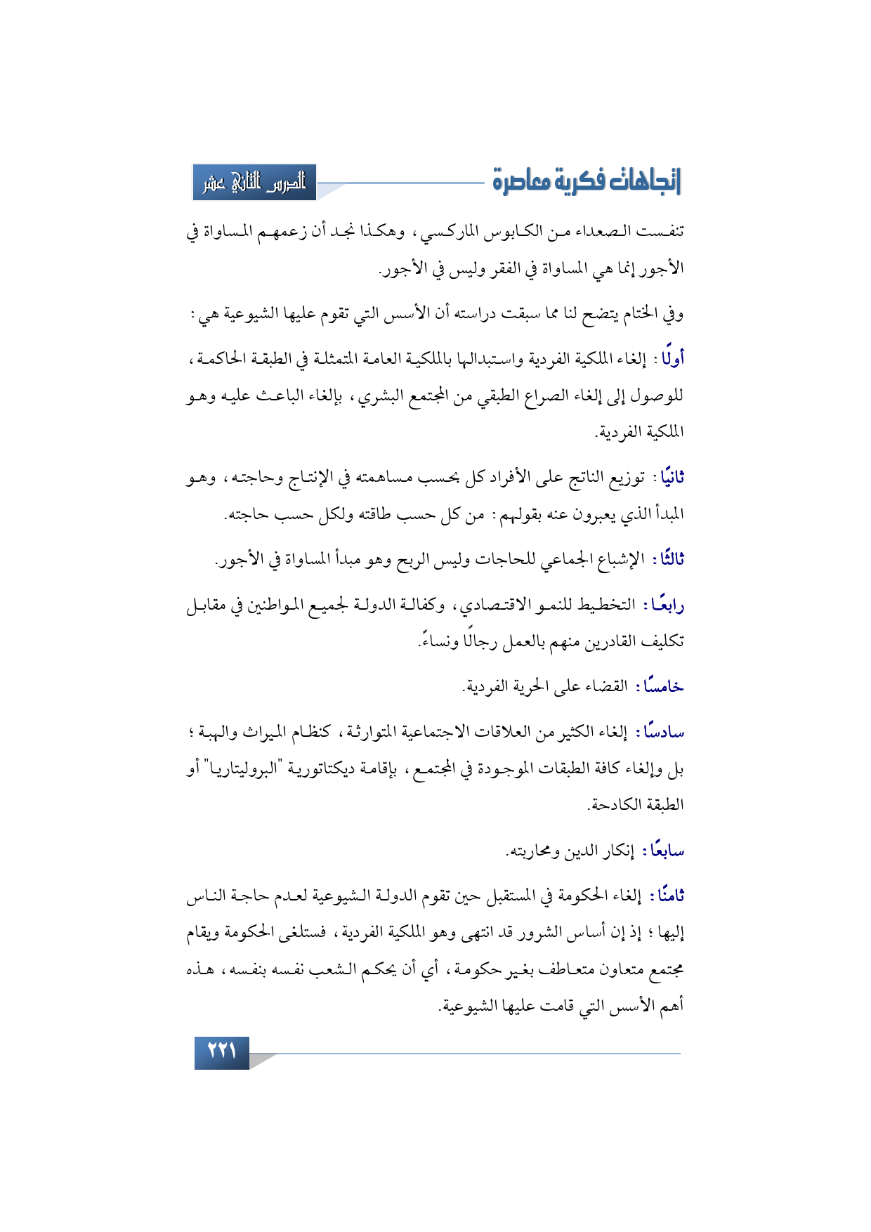 وفي الختام يتضح لنا مما سبقت دراسته أن الأسس التي تقوم عليها الشيوعية هي: