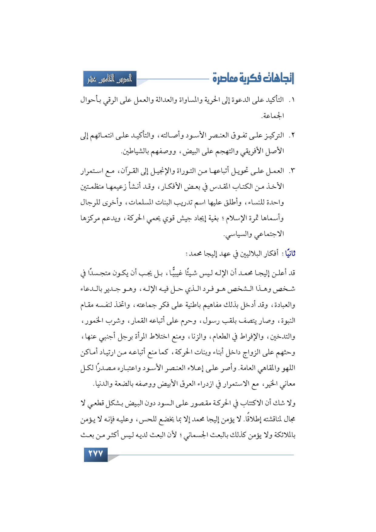 ثانيًا: أفكار البلاليين في عهد إليجا محمد: