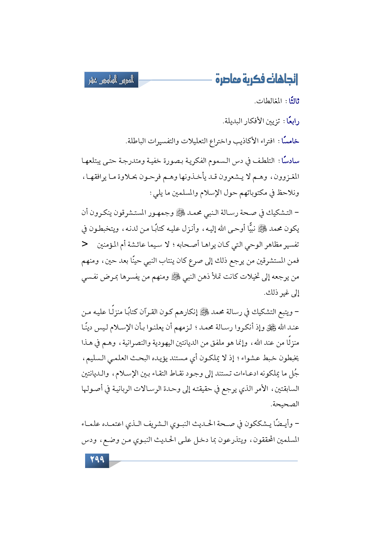 - وأيضًا يشككون في صحة الحديث النبوي الشريف الذي اعتمده علماء المسلمين المحققون، ويتذرعون بما دخل على الحديث النبوي من وضع، ودس