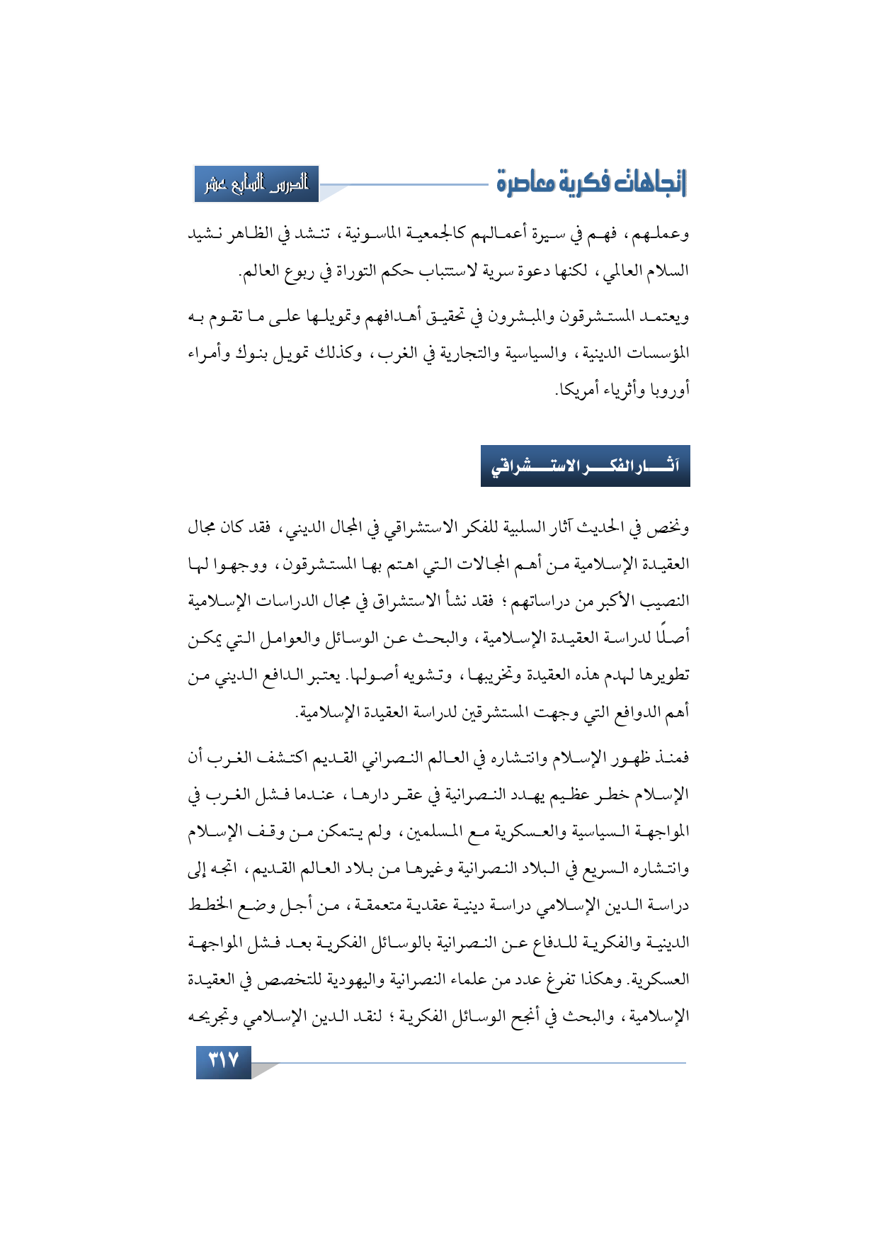 ونخص في الحديث آثار السلبية للفكر الاستشراقي في المجال الديني، فقد كان مجال العقيدة الإسلامية من أهم المجالات التي اهتم بها المستشرقون، ووجهوا لها النصيب الأكبر من دراساتهم، فقد نشأ الاستشراق في مجال الدراسات الإسلامية أصلًا لدراسة العقيدة الإسلامية، والبحث عن الوسائل والعوامل التي يمكن تطويرها لهدم هذه العقيدة وتخريبها، وتشويه أصولها. يعتبر الدافع الديني من أهم الدوافع التي وجهت المستشرقين لدراسة العقيدة الإسلامية.