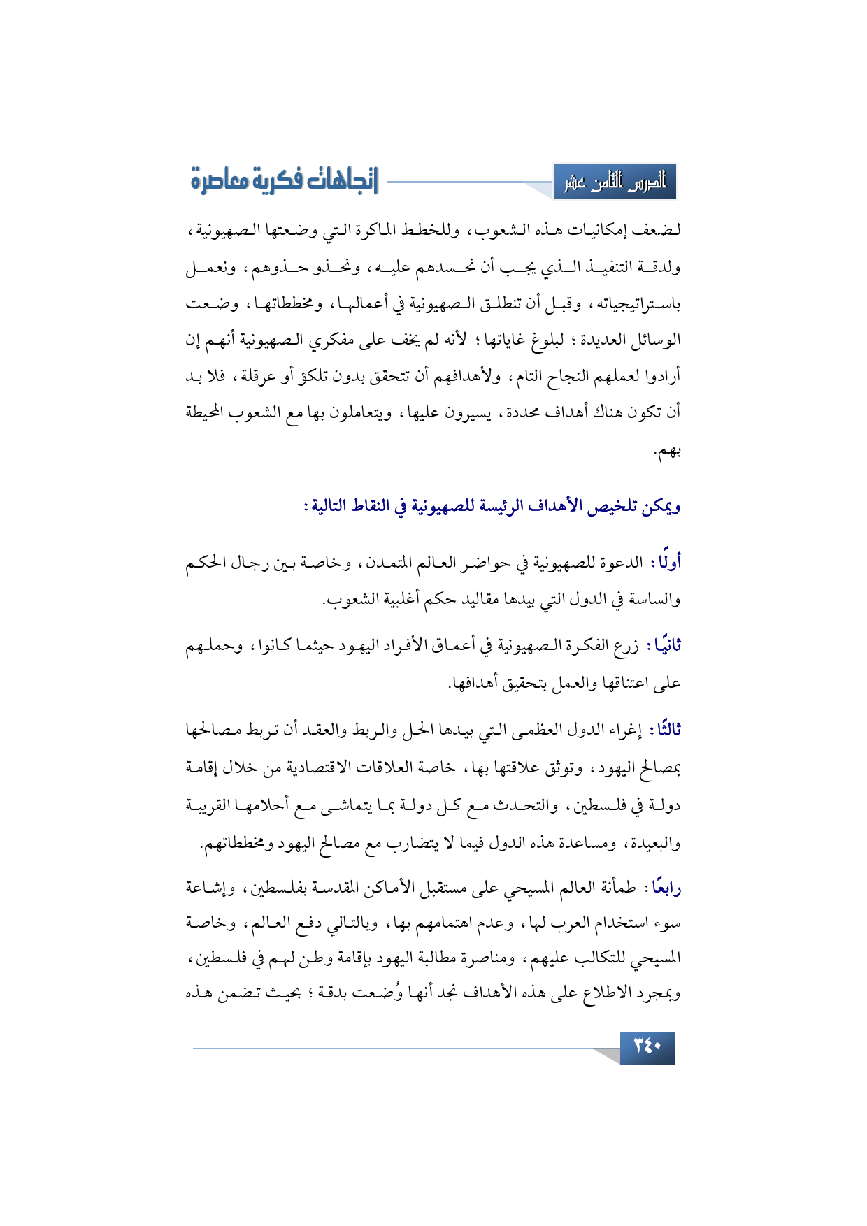 ويمكن تلخيص الأهداف الرئيسة للصهيونية في النقاط التالية: