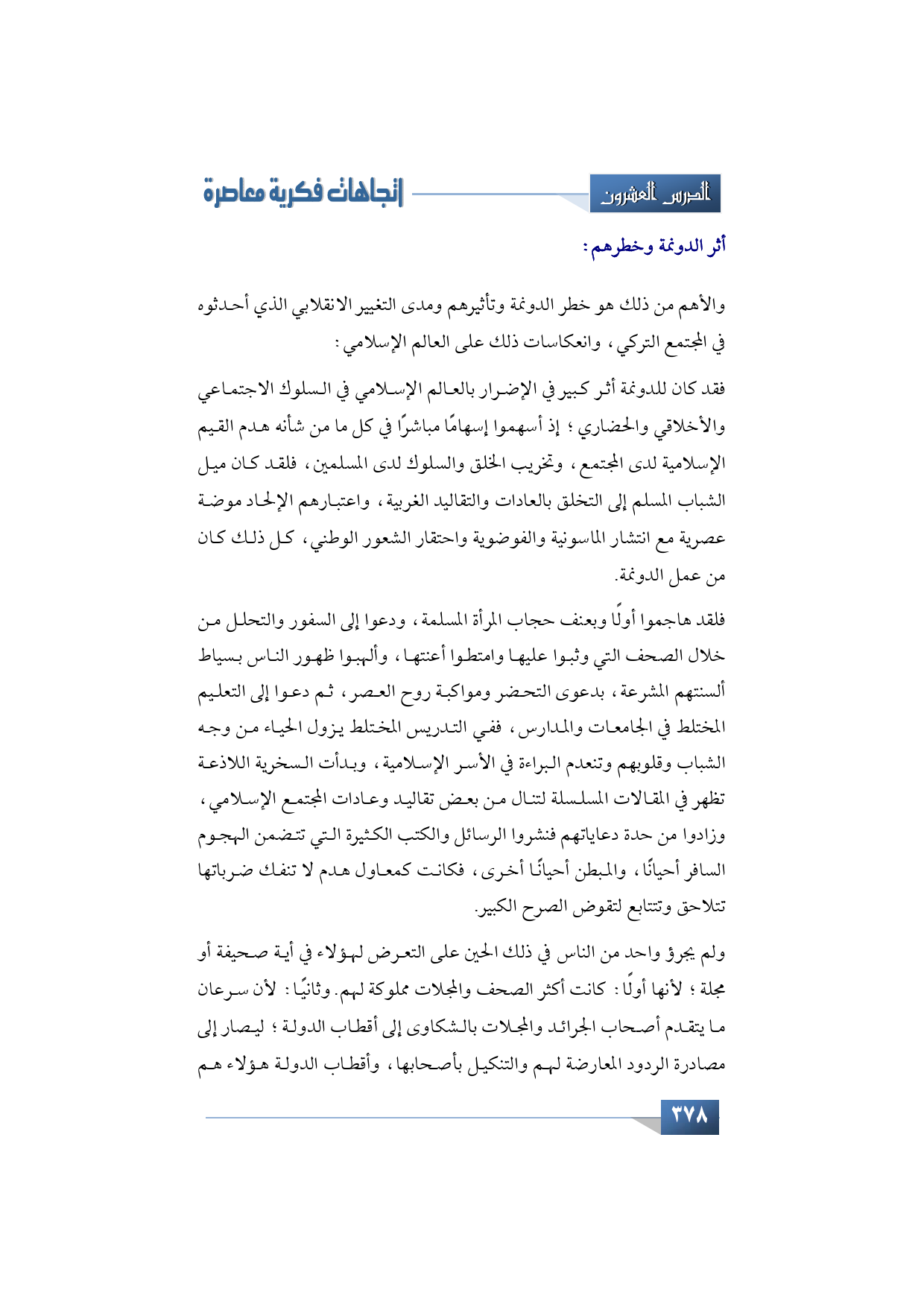 والأهم من ذلك هو خطر الدونمة وتأثيرهم ومدى التغيير الانقلابي الذي أحدثوه في المجتمع التركي، وانعكاسات ذلك على العالم الإسلامي: