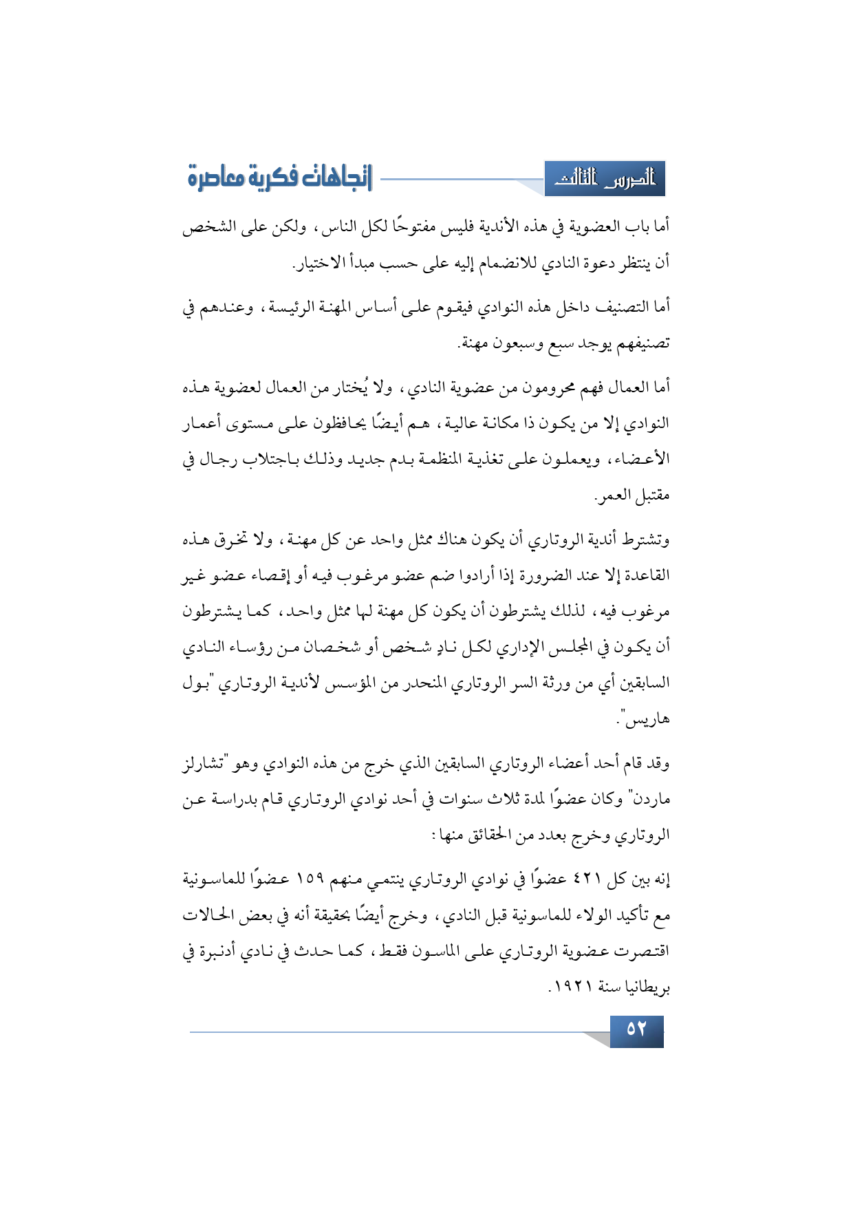 أما التصنيف داخل هذه النوادي فيقوم على أساس المهنة الرئيسية، وعندهم في تصنيفهم يوجد سبعة وسبعين مهنة.
