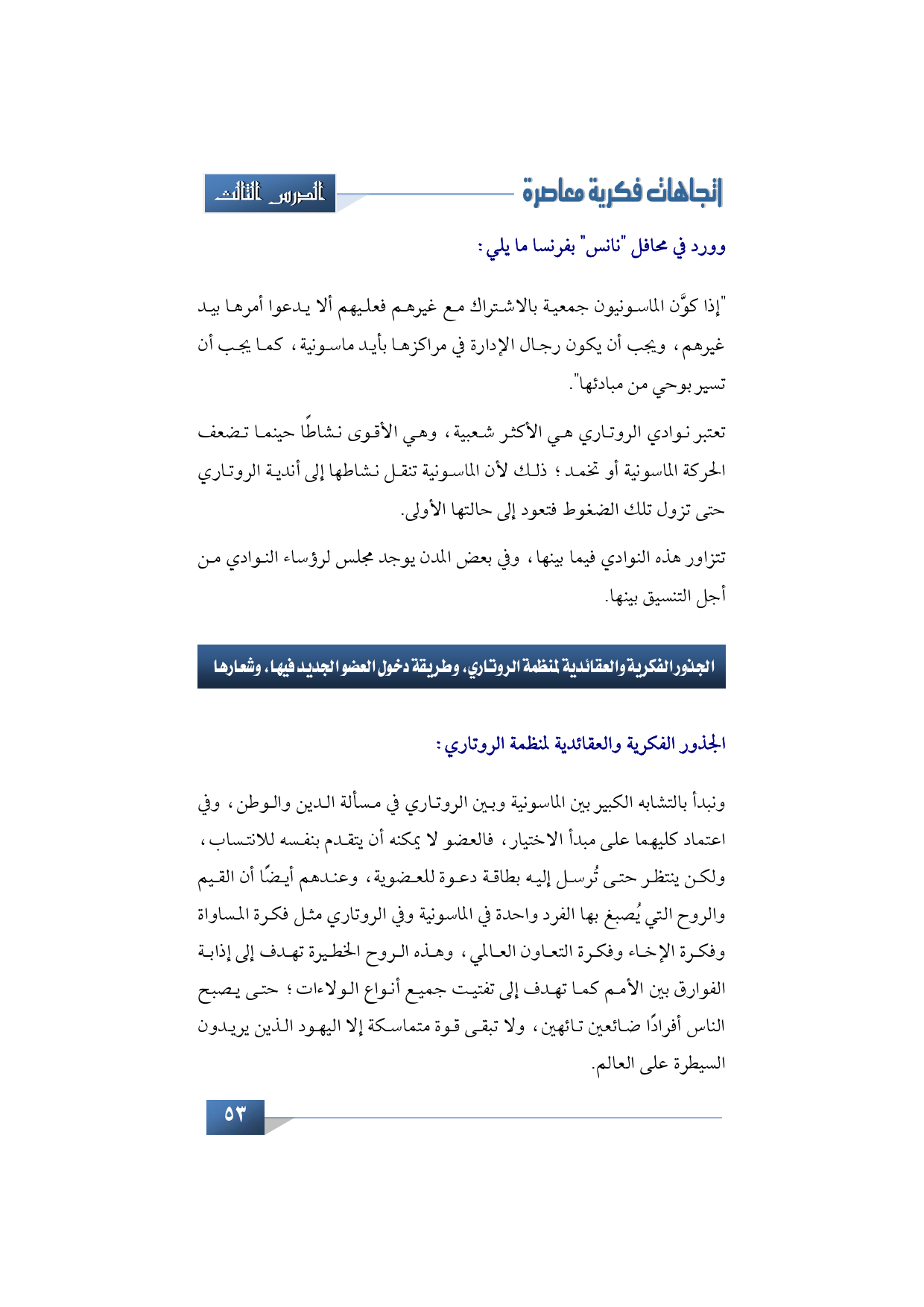 الجذور الفكرية والعقائدية لمنظمة الروتاري، وطريقة دخول العضو الجديد فيها، وشعارها
