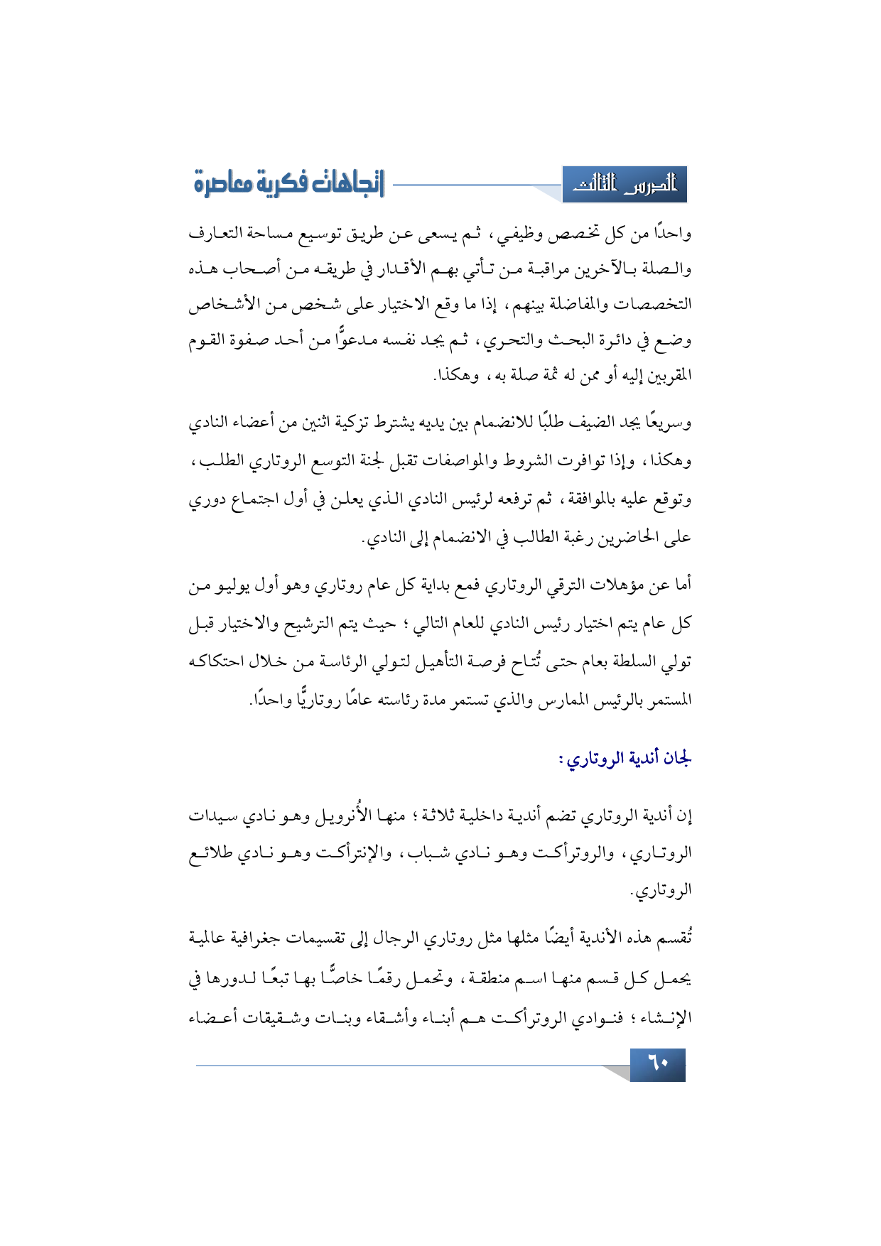 أما عن مؤهلات الترقي الروتاري فمع بداية كل عام روتاري وهو أول يوليو من كل عام يتم اختيار رئيس النادي للعام التالي؛ حيث يتم الترشيح والاختيار قبل تولي السلطة بعام حتى تُتاح فرصة التأهيل ل تولي الرئاسة من خلال احتكاكه المستمر بالرئيس الممارس والذي تستمر مدة رئاسته عامًا روتاريًّا واحد.