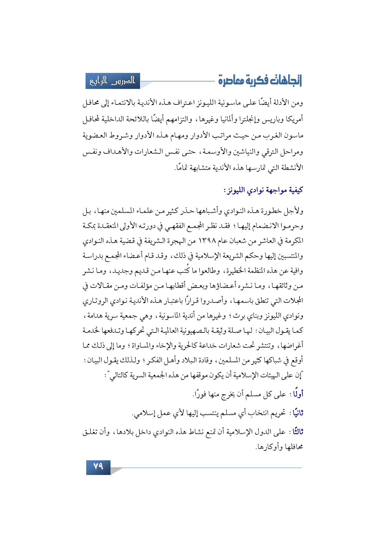 ثالثًا: على الدول الإسلامية أن تمنع نشاط هذه النوادي داخل بلادها، وأن تغلق محافلها وأوكارها.