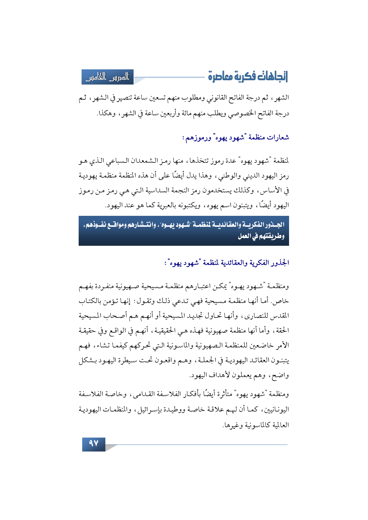 الجذور الفكرية والعقائدية لمنظمة شهود يهوه، وانتشارهم ومواقع نفوذهم، وطريقتهم في العمل