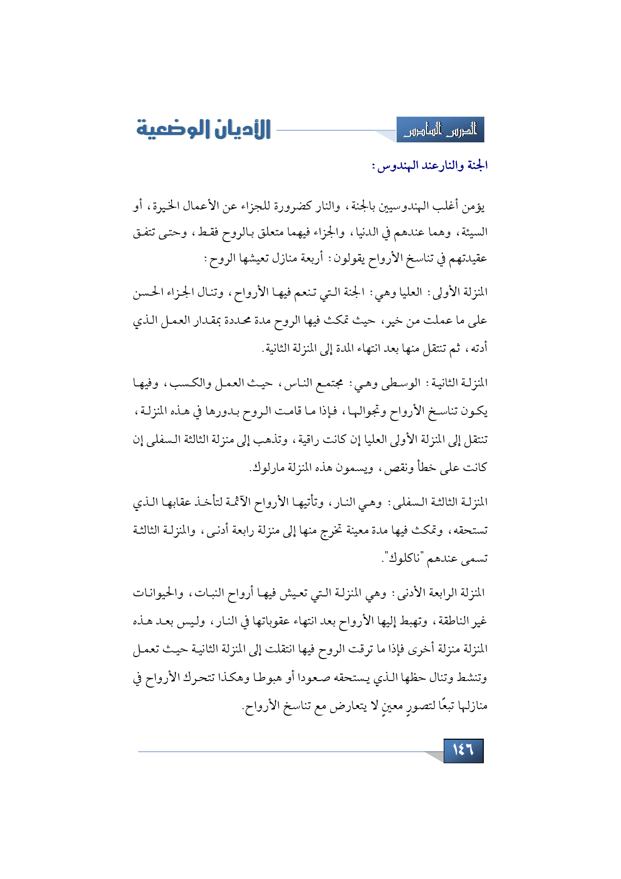 ثم الحديث عن الجنة والنار يؤمن أغلب الهندوسيين بالجنة، والنار كضرورة للجزاء عن الأعمال الخيرة، أو السيئة، وهما عندهم في الدنيا، والجزاء فيهما متعلق بالروح فقط، وحتى تتفق عقيدتهم في تناسخ الأرواح يقولون بمنازلهم أربعة تعيشها الروح.