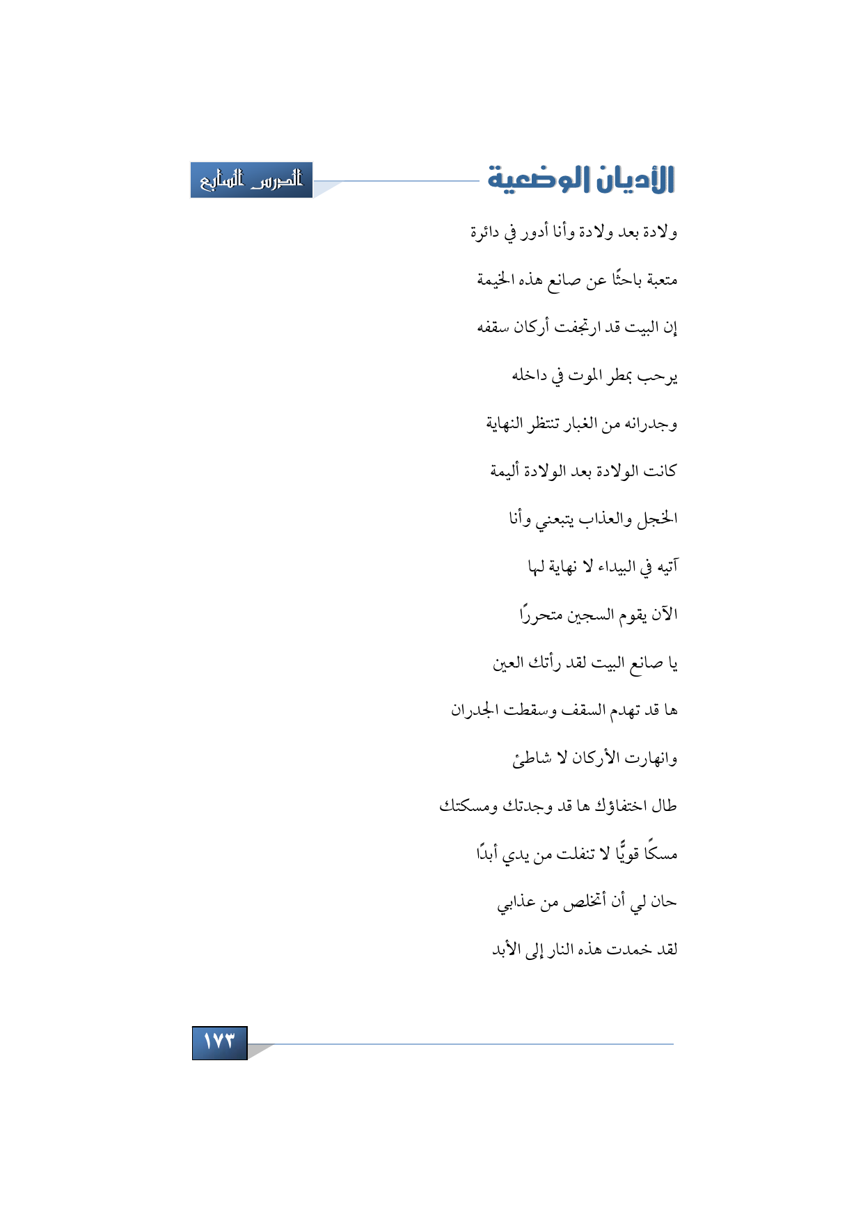 ولادة بعد ولادة وأنا أدور في دائرة ... متعبة باحثًا عن صانع هذه الخيمة