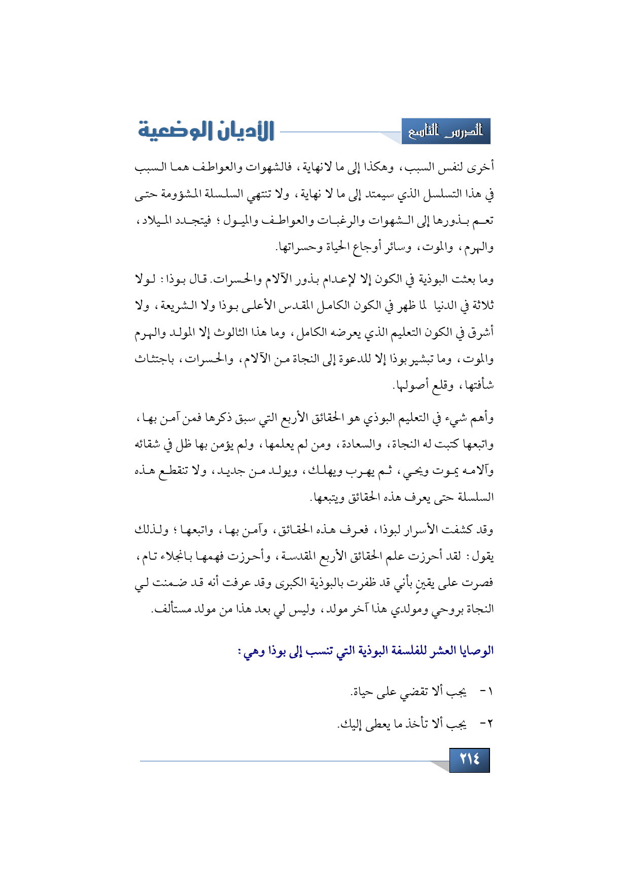 وإتمام للفلسفة البوذية نذكر الوصايا العشر التي تنسب إلى بوذا وهي: