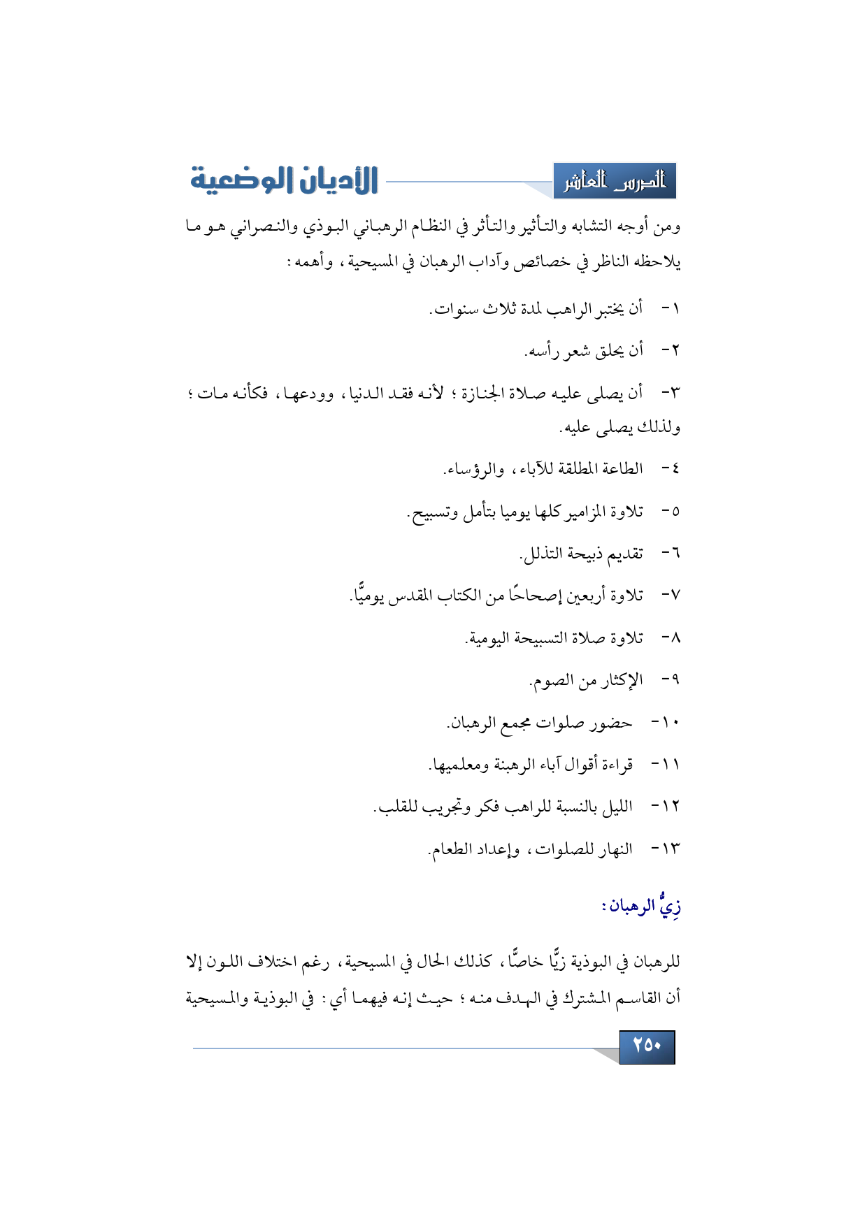 كما لا حظنا أن للرهبان في البوذية زيًّا خاصًّا، كذلك الحال في المسيحية رغم اختلاف اللون إلا أن القاسم المشترك في الهدف منه؛ حيث إنه فيهما أي: في البوذية والمسيحية