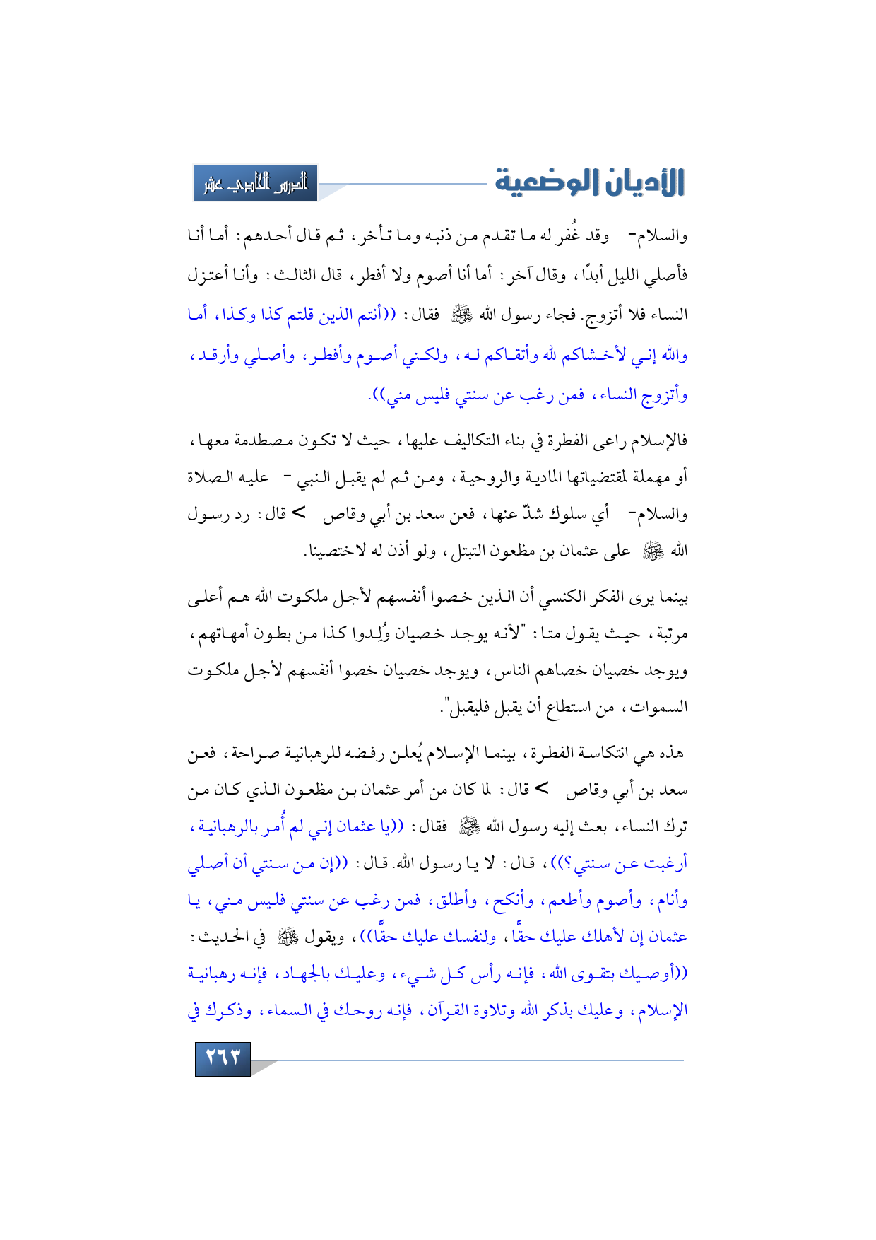 أرأيت إلى انتكاسة الفطرة كيف تكون، بينما الإسلام يُعلن رفضه للرهبانية صراحة، فعن سعد بن أبي وقاص -رضي الله عنه- أيضًا قال: لما كان من أمر عثمان بن مظعون الذي كان من ترك النساء، بعث إليه رسول الله -صلى الله عليه وآله وسلم- فقال: ((يا عثمان إني لم أُمر بالرهبانية، أرغبت عن سنتي؟))، قال: لا يا رسول الله. قال: ((إن من سنتي أن أصلي وأ نام، وأ صوم وأطعم، وأنكح، وأطلق، فمن رغب عن سنتي فليس مني، يا عثمان إن لأهلك عليك حقًّا، ولنفسك عليك حقًّا))، ويقول -صلى الله عليه وآله وسلم- في الحديث: ((أوصيك بتقوى الله، فإنه رأس كل شيء، وعليك بالجهاد، فإنه رهبانية الإسلام، وعليك بذكر الله وتلاوة القرآن، فإنه روحك في السماء، وذكرك في