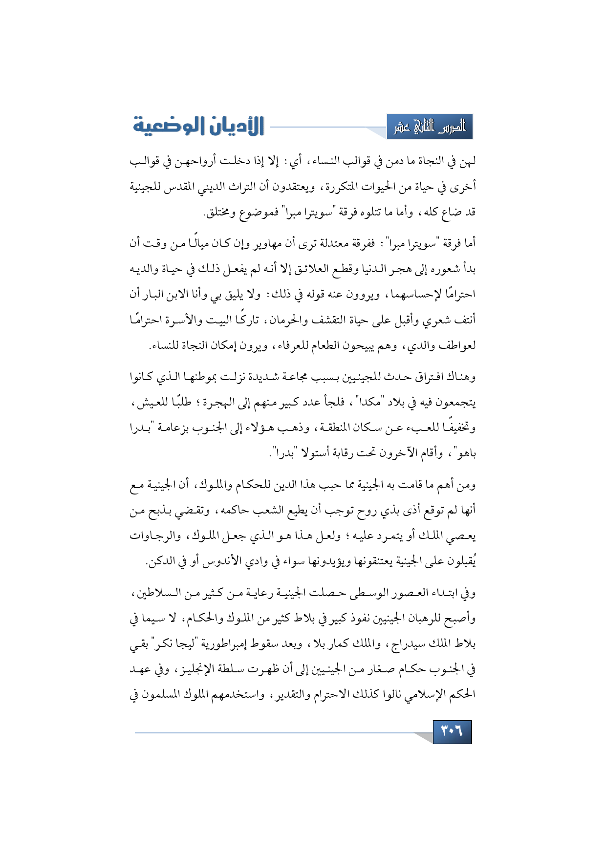 لهن في النجاة ما دمن في قوالب النساء، أي: إلا إذا دخلت أرواحن في قوالب أخرى في حياة من الحيوات المتكررة، ويعتقدون أن التراث الديني المقدس للجينية قد ضاع كله، وأما ما تتلوه فرقة سيتا مبرا فموضوع ومختلق.