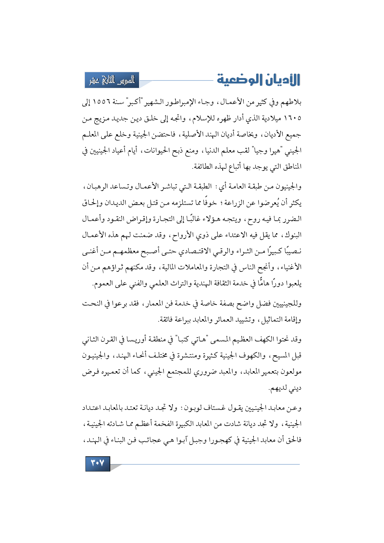 بلاطهم وفي كثير من الأعمال، وجاء الإمبراطور الشهير أكبر سنة 1556 إلى 1605 ميلادية الذي أدار ظهره للإسلام، واتجه إلى خلق دين جديد مزيج من جميع الأديان، وبخاصة أديان الهند الأصلية، فاحتضن الجينية وخلع على المعلم الجيني هيرا وجيا لقب معلم الدنيا، ومنع ذبح الحيوانات، أيام أعياد الجينيين في المناطق التي يوجد بها أتباع لهذه الطائفة.