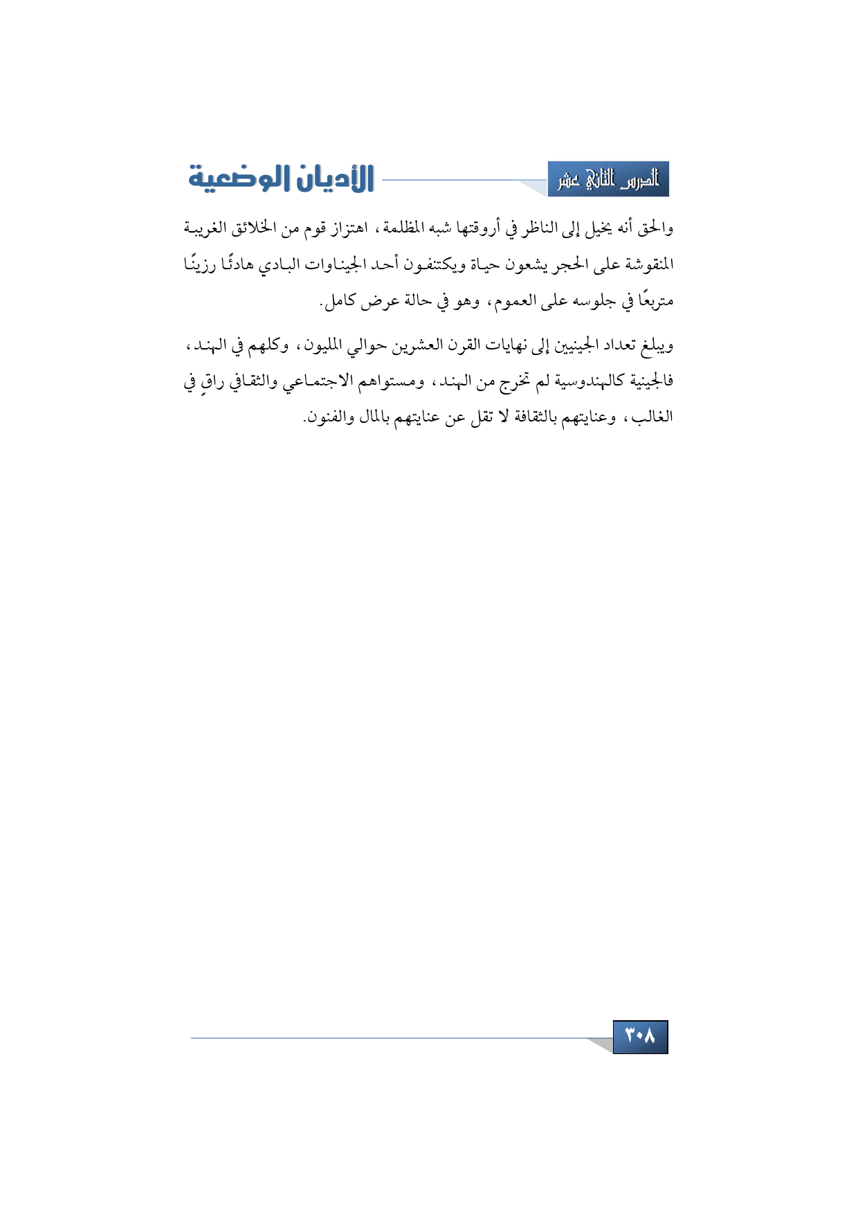 ويبلغ تعداد الجينيين إلى نهايات القرن العشرين حوالي المليون، وكلهم في الهند، فالجينية كالهندوسية لم تخرج من الهند، ومستواهم الاجتماعي والثقافي راقٍ في الغالب، وعنايتهم بالثقافة لا تقل عن عنايتهم بالمال والفنون، فتلك لمحة تاريخية عن الجينية من بدايتها إلى نهايتها وما آلت إليه.