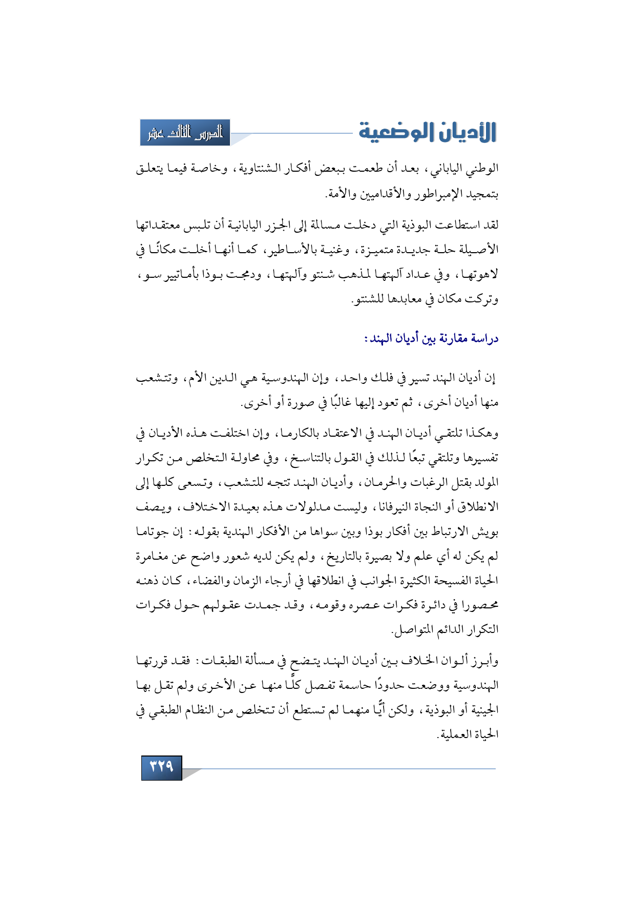 كان هذا عن انتشار البوذية كدين هندي في الصين واليابان، وأعود إلى دراسة مقارنة بين أديان الهند، قلنا: فيما سبق إن أديان الهند تسير في فلك واحد، وإن الهندوسية هي الدين الأم، وتتشعب منها أديان أخرى، ثم تعود إليها غالبًا في صورة أو أخرى.