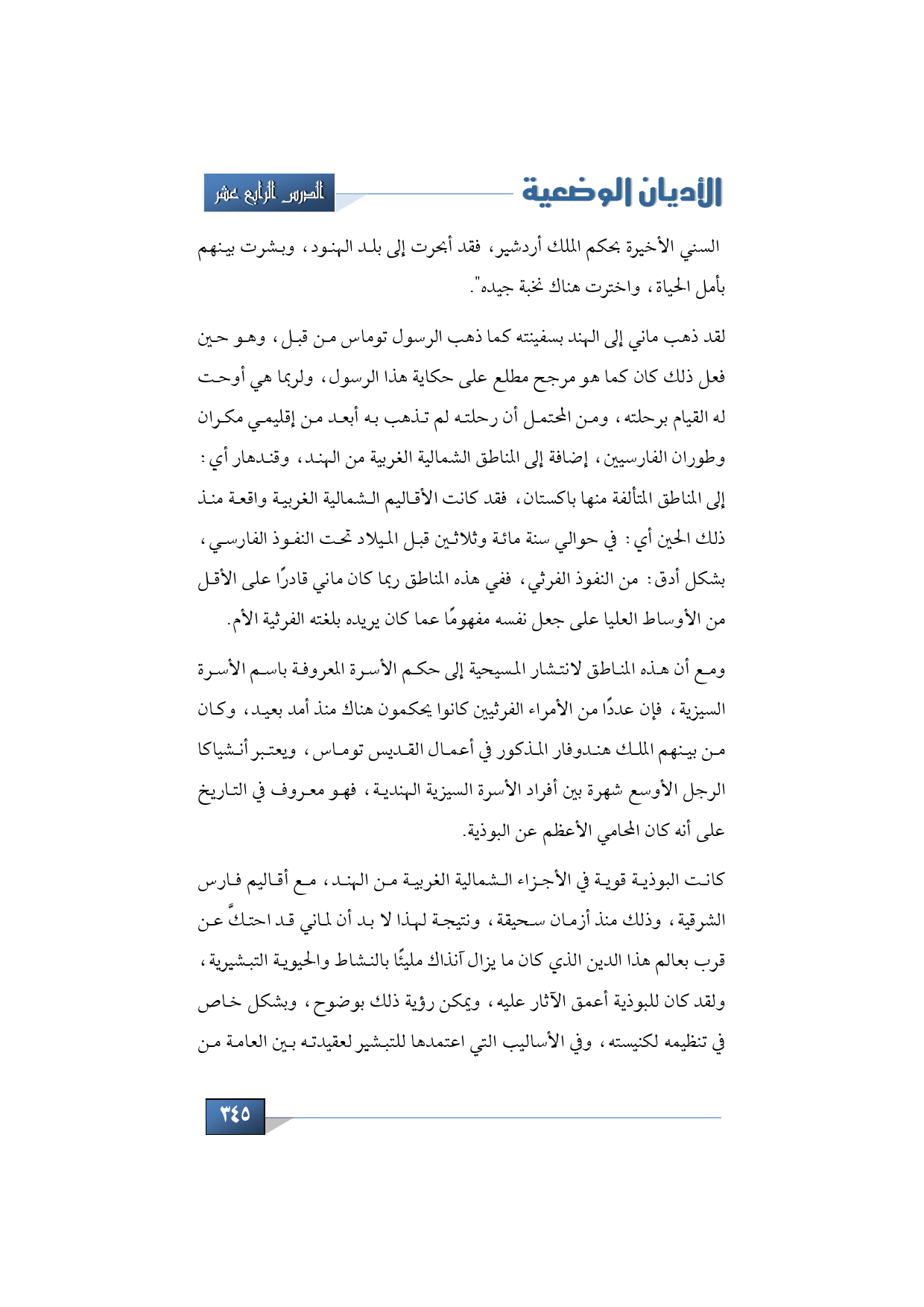السني الأخيرة بحكم الملك أردشير، فقد أبحرت إلى بلد الهنود، وبشرت بينهم بأمل الحياة، واخترت هناك نخبة جيده.