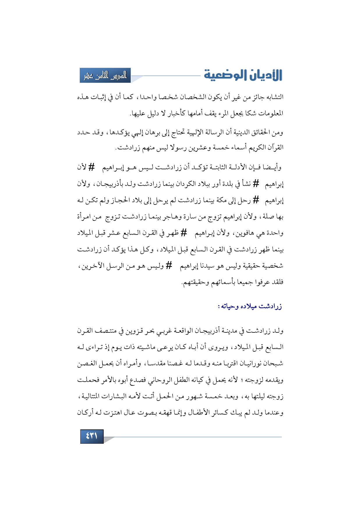 وهذه الأدلة لا تثبت مدعاها؛ لأن التشابه بين شخصين أو أكثر في بعض الأحداث أمر ممكن، كما أن من أحداث سيرة زرادشت ما يشبه بعض ما حدث مع موسى وعيسى ومحمد -عليهم الصلاة والسلام- مثل البشريات والإرهاصات العديدة التي جاءت لأمه أثناء مولده، ومثل نجاته بصورة معجزة من محاولات قتله المتكررة ومثل انتصاره على السحرة وإعجازه، ومثل هذا