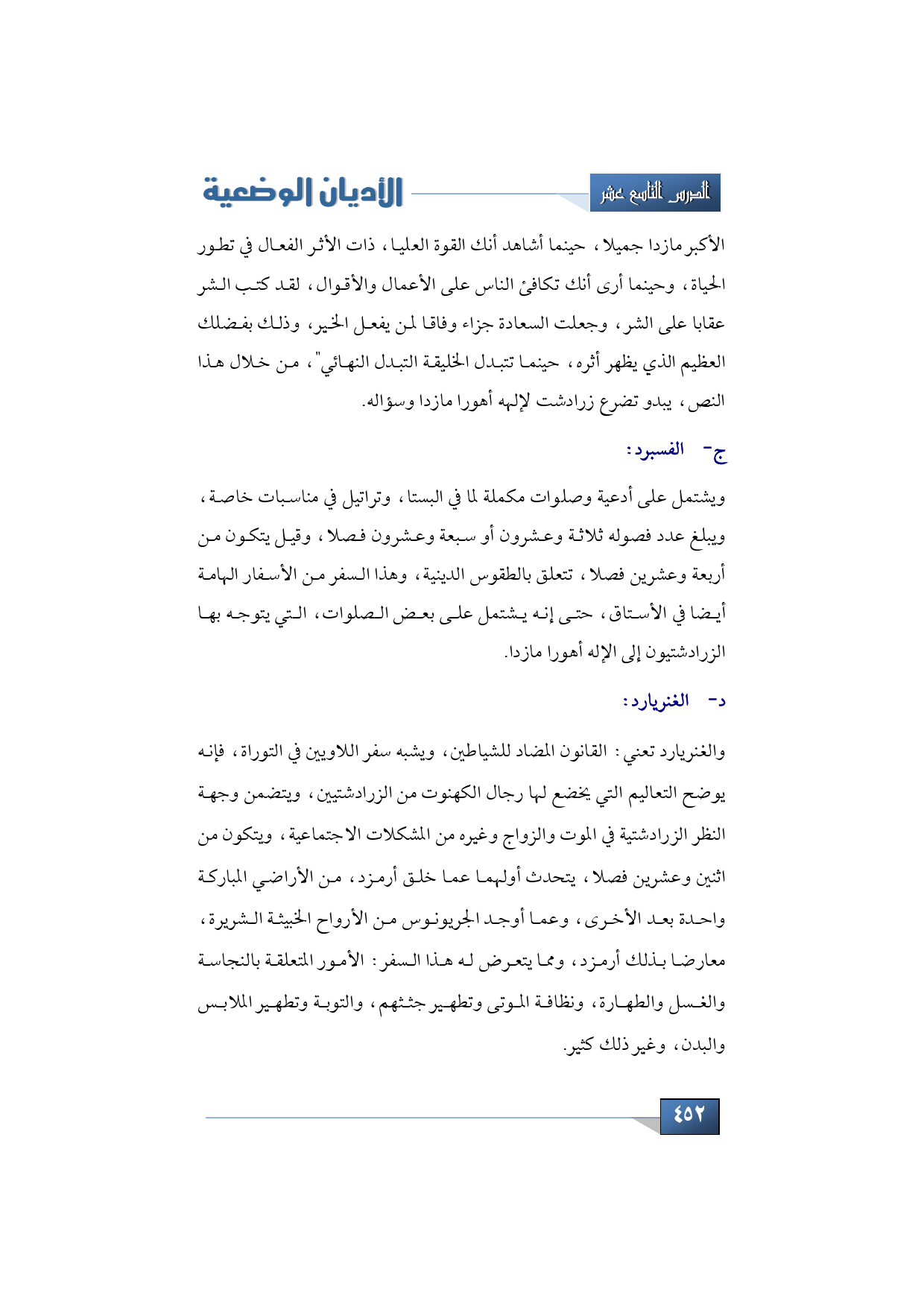 الأستاق الحالي الكتاب المقدس لدى الزرادشتية، يحوي أسفارا وهي: