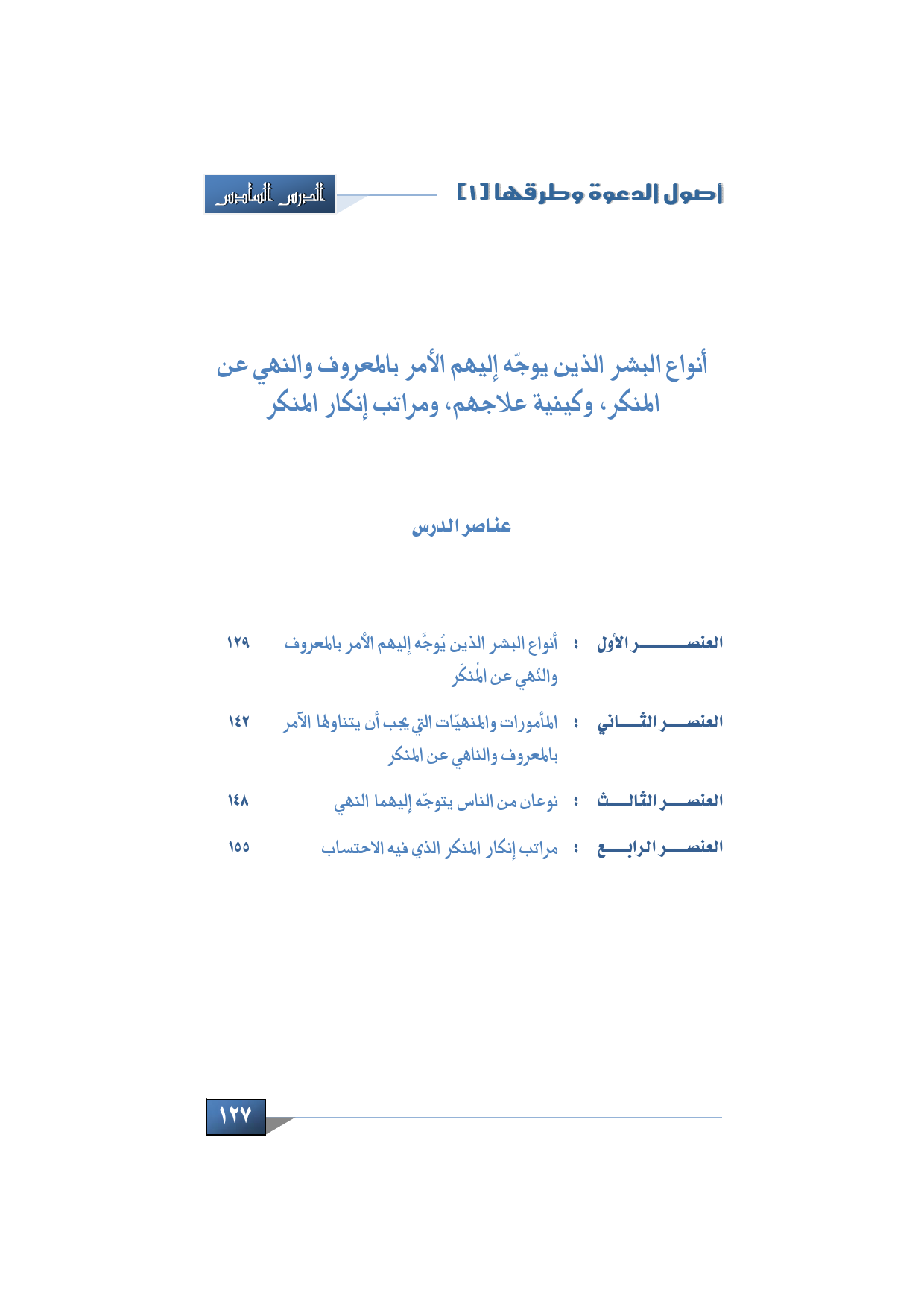 الدرس: 6 أنواع البشر الذين يوجه إليهم الأمر بالمعروف والنهي عن المنكر, وكيفية علاجهم, ومراتب إنكار المنكر.