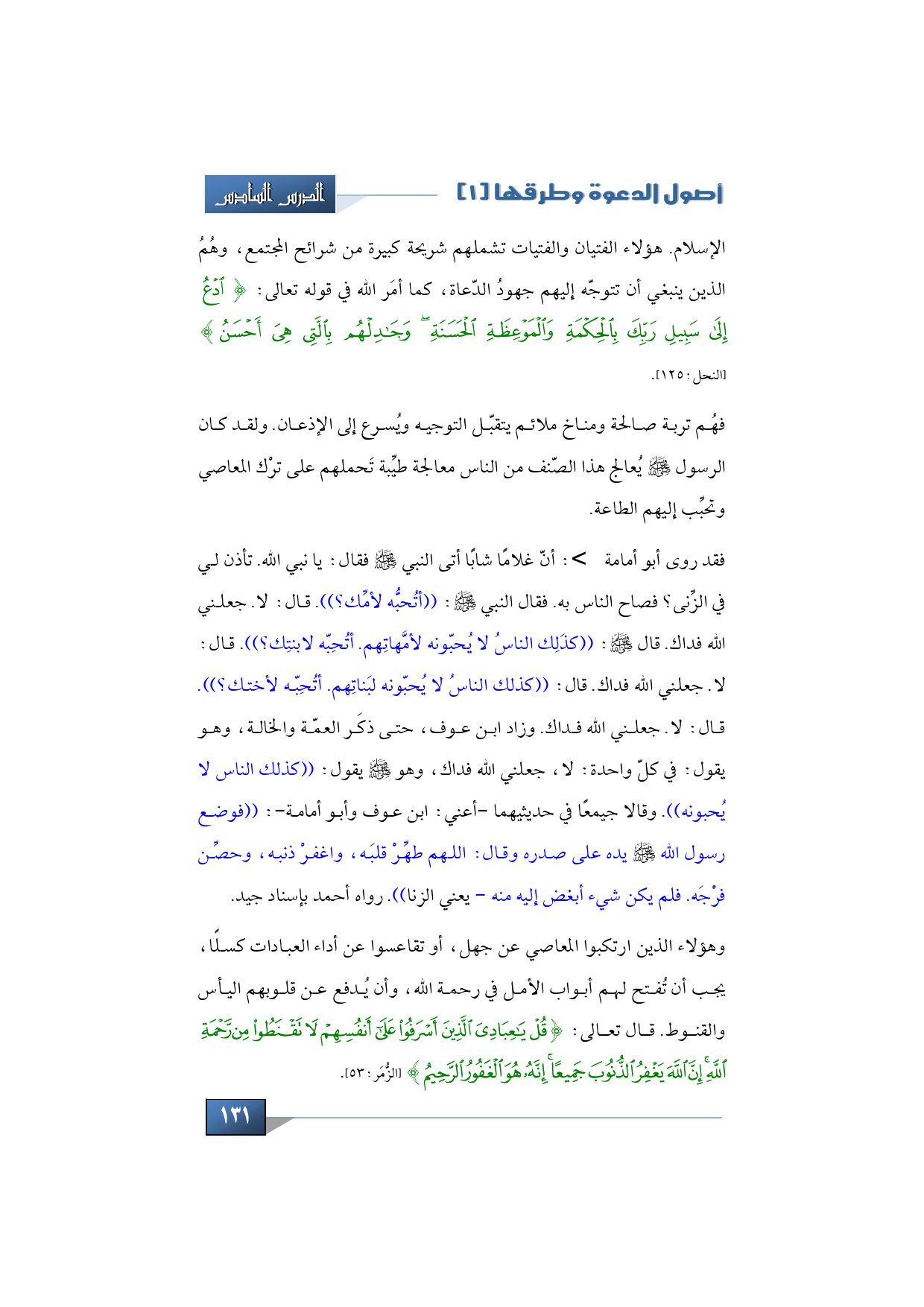 الإسلام. هؤلاء الفتيان والفتيات تشملهم شريحة كبيرة من شرائح المجتمع، وهُمُ الذين ينبغي أن تتوجّه إليهم جهودُ الدّعاة، كما أمَر الله في قوله تعالى: {ادْعُ إِلَى سَبِيلِ رَبِّكَ بِالْحِكْمَةِ وَالْمَوْعِظَةِ الْحَسَنَةِ وَجَادِلْهُمْ بِالَّتِي هَِيَ أَحْسَنُ} (النحل:125).