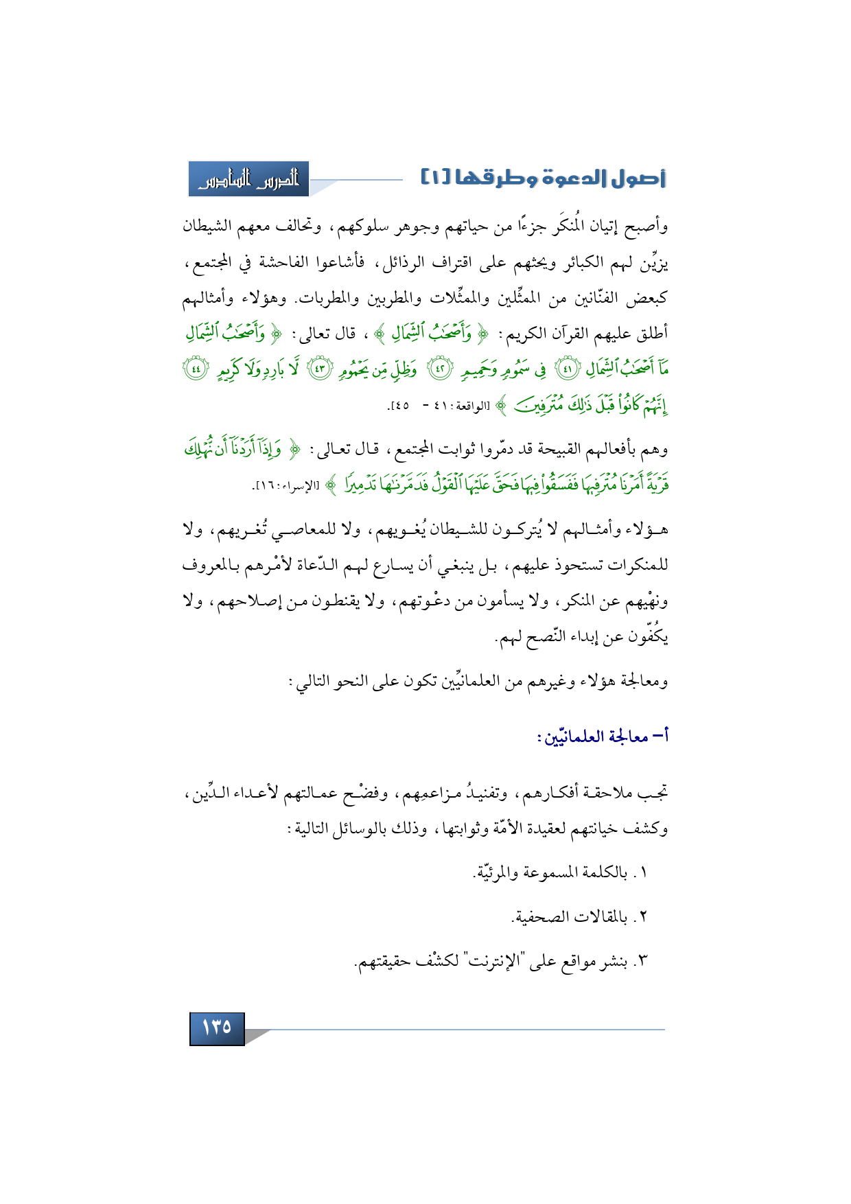 ومعالجة هؤلاء وغيرهم من العلمانيِّين تكون على النحو التالي: