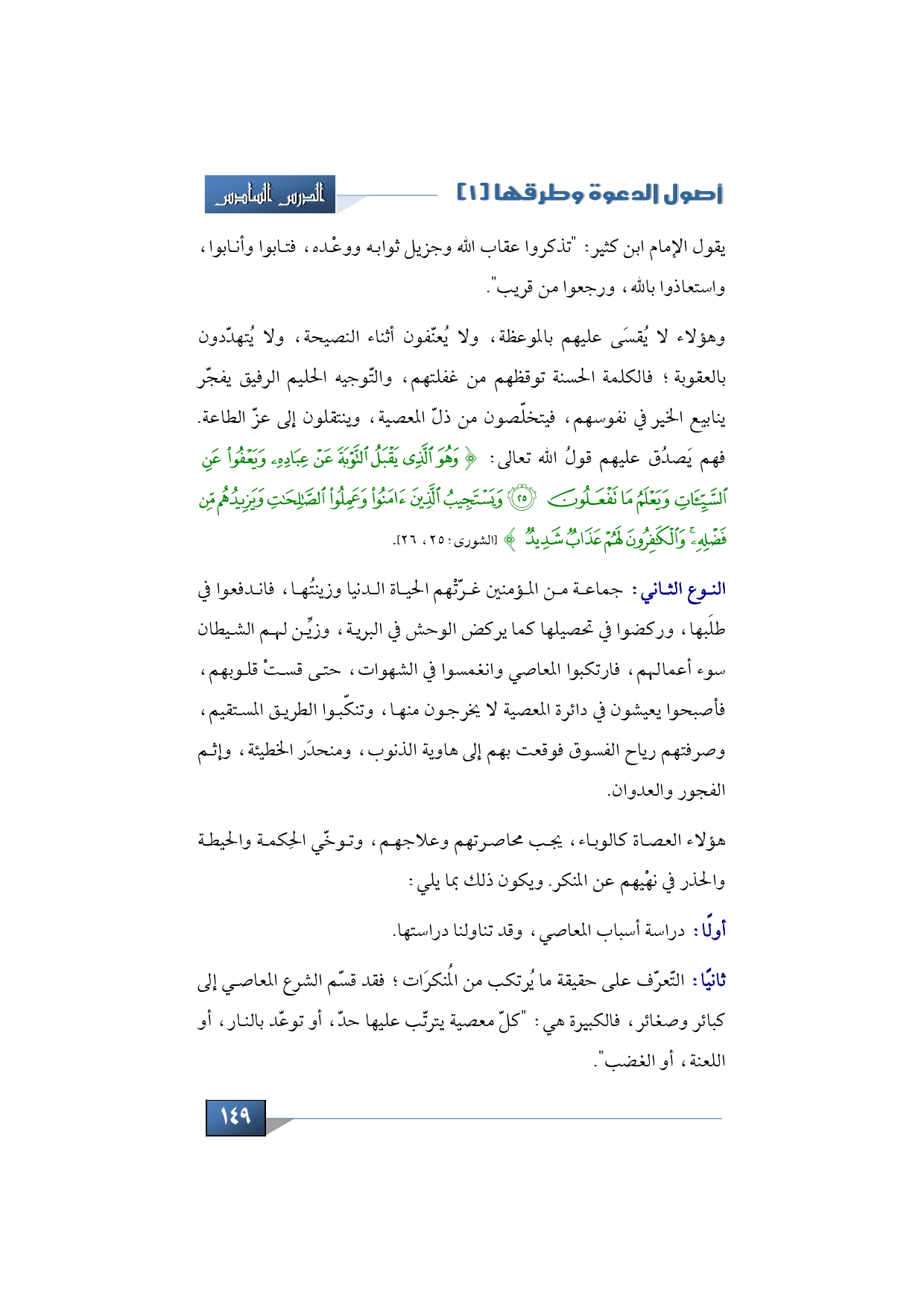 وهؤلاء لا يُقسَى عليهم بالموعظة، ولا يُعنّفون أثناء النصيحة، ولا يُتهدّدون بالعقوبة؛ فالكلمة الحسنة توقظهم من غفلتهم، والتّوجيه الحليم الرفيق يفجّر ينابيع الخير في نفوسهم، فيتخلّصون من ذلّ المعصية، وينتقلون إلى عزّ الطاعة. فهم يَصدُق عليهم قولُ الله تعالى: {وَهُوَ الَّذِي يَقْبَلُ التَّوبَةَ عَنْ عِبَادِهِ وَيَعْفُو عَنِ السَّيِّئَاتِ وَيَعْلَمُ مَا تَفْعَلُونَ * وَيَسْتَجِيبُ الَّذِينَ آمَنُوا وَعَمِلُوا الصَّالِحَاتِ وَيَزِيدُهُمْ مِنْ فَضْلِهِ وَالْكَافِرُونَ لَهُمْ عَذَابٌ شَدِيدٌ} (الشورى:25، 26).