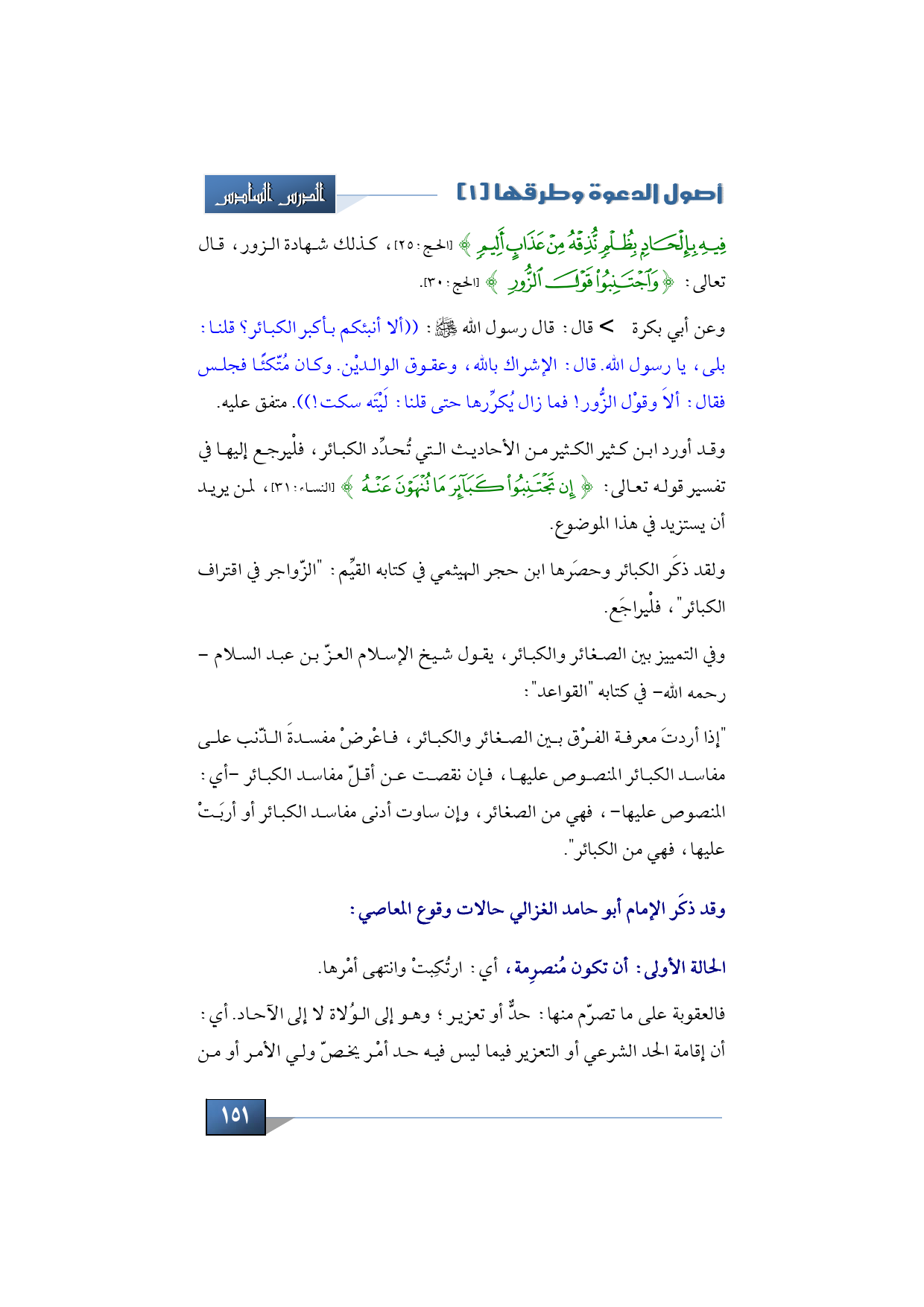 فِيهِ بِإِلْحَادٍ بِظُلْمٍ نُذِقْهُ مِنْ عَذَابٍ أَلِيمٍ} (الحج:25)، كذلك شهادة الزور، قال تعالى: {وَاجْتَنِبُوا قَوْلَ الزُّورِ} (الحج:30).