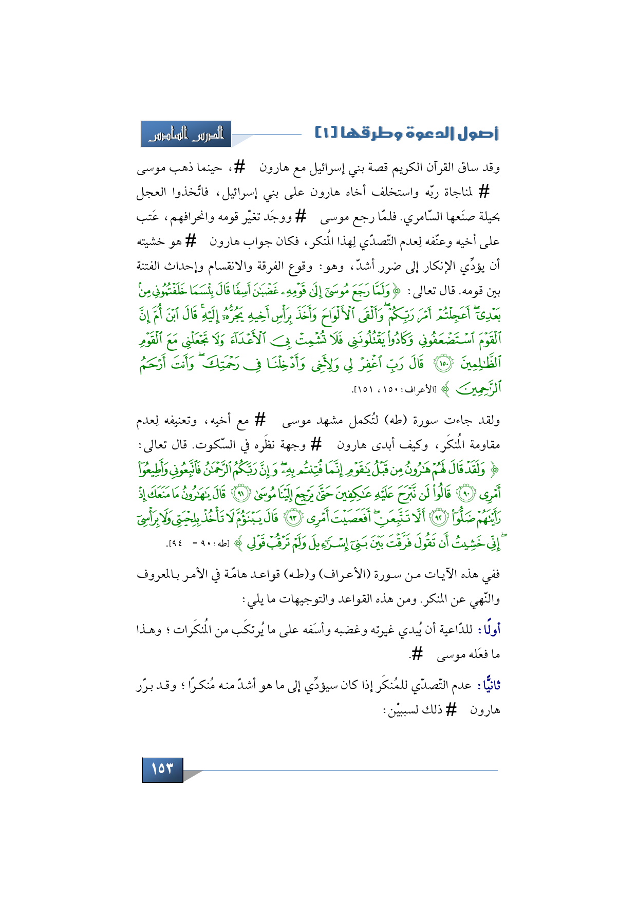 ففي هذه الآيات من سورة (الأعراف) و (طه) قواعد هامّة في الأمر بالمعروف والنّهي عن المنكر. ومن هذه القواعد والتوجيهات ما يلي: