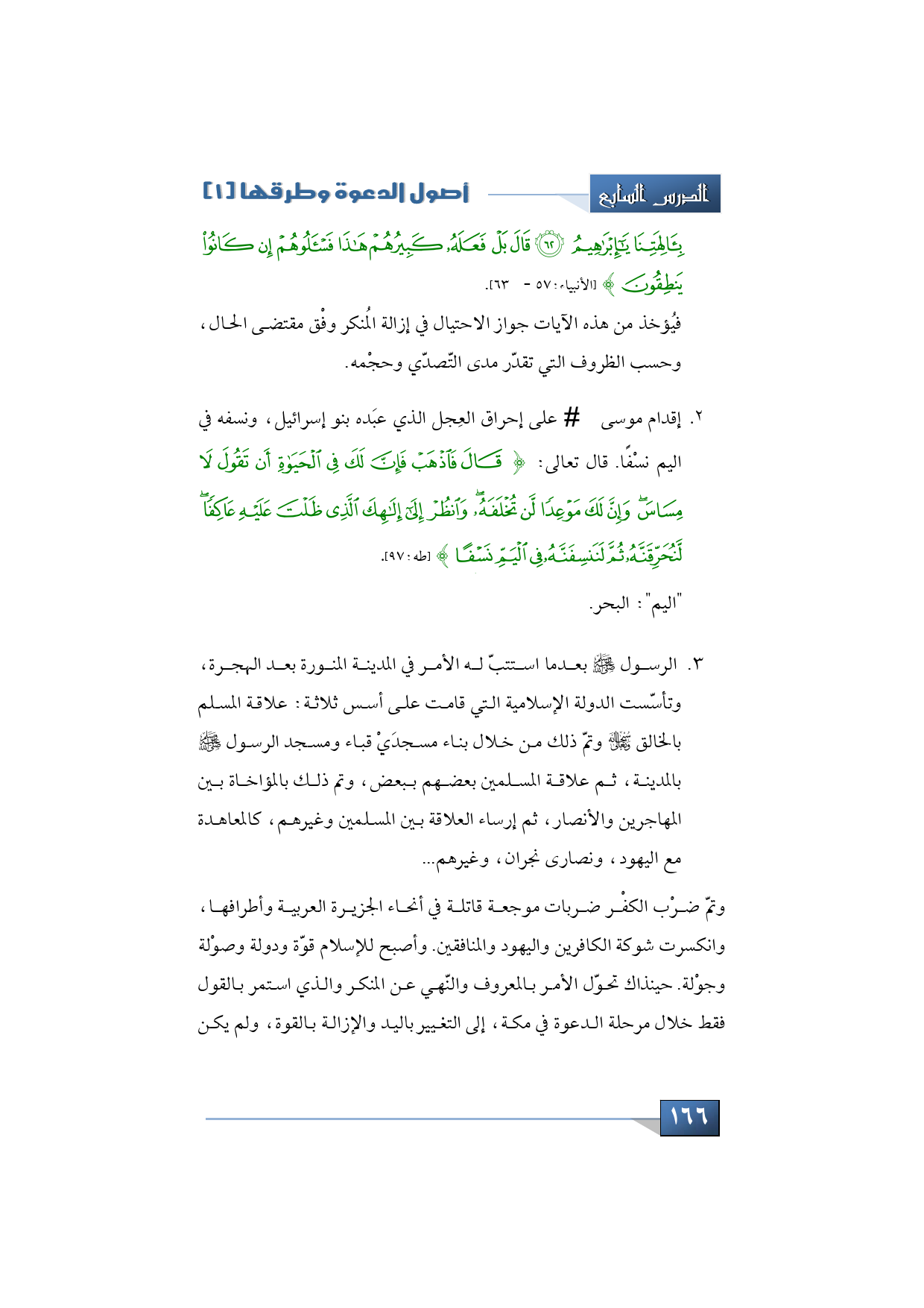 وتمّ ضرْب الكفْر ضربات موجعة قاتلة في أنحاء الجزيرة العربية وأطرافها، وانكسرت شوكة الكافرين واليهود والمنافقين. وأصبح للإسلام قوّة ودولة وصوْلة وجوْلة. حينذاك تحوّل الأمر بالمعروف والنّهي عن المنكر والذي استمر بالقول فقط خلال مرحلة الدعوة في مكة، إلى التغيير باليد والإزالة بالقوة، ولم يكن