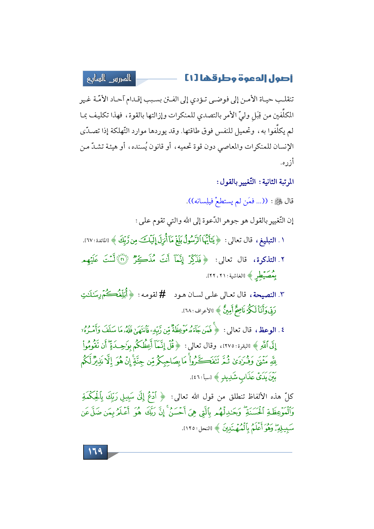 إن التّغيير بالقول هو جوهر الدّعوة إلى الله والتي تقوم على: