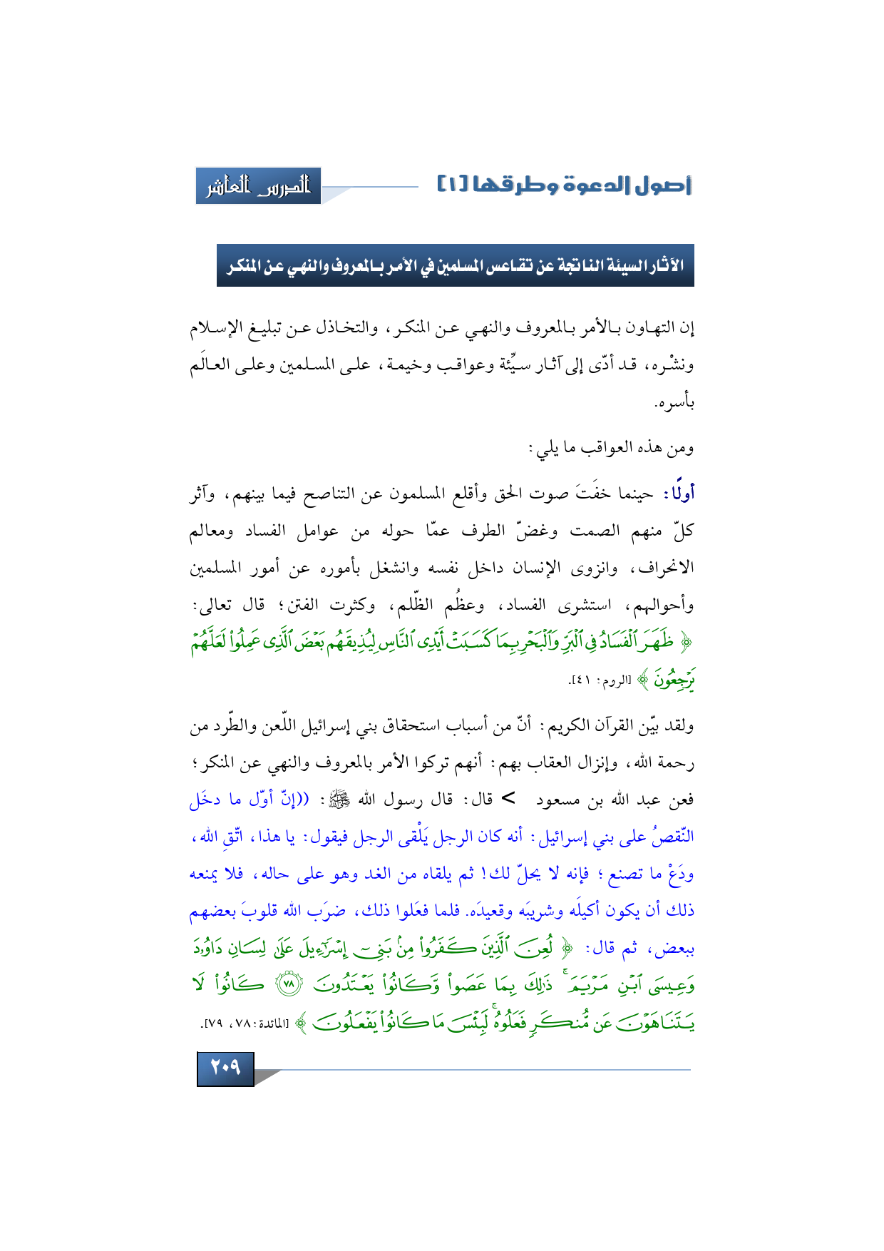 (الآثار السيئة الناتجة عن تقاعس المسلمين في الأمر بالمعروف والنهي عن المنكر، وحقيقة الدعوة الإسلامية)
