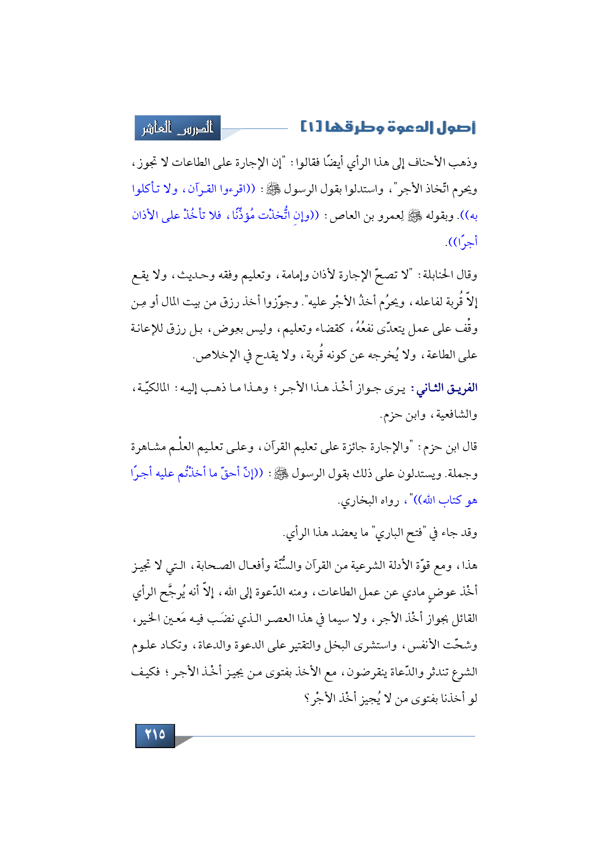الفريق الثاني: يرى جواز أخْذ هذا الأجر؛ وهذا ما ذهب إليه: المالكيّة، والشافعية، وابن حزم.