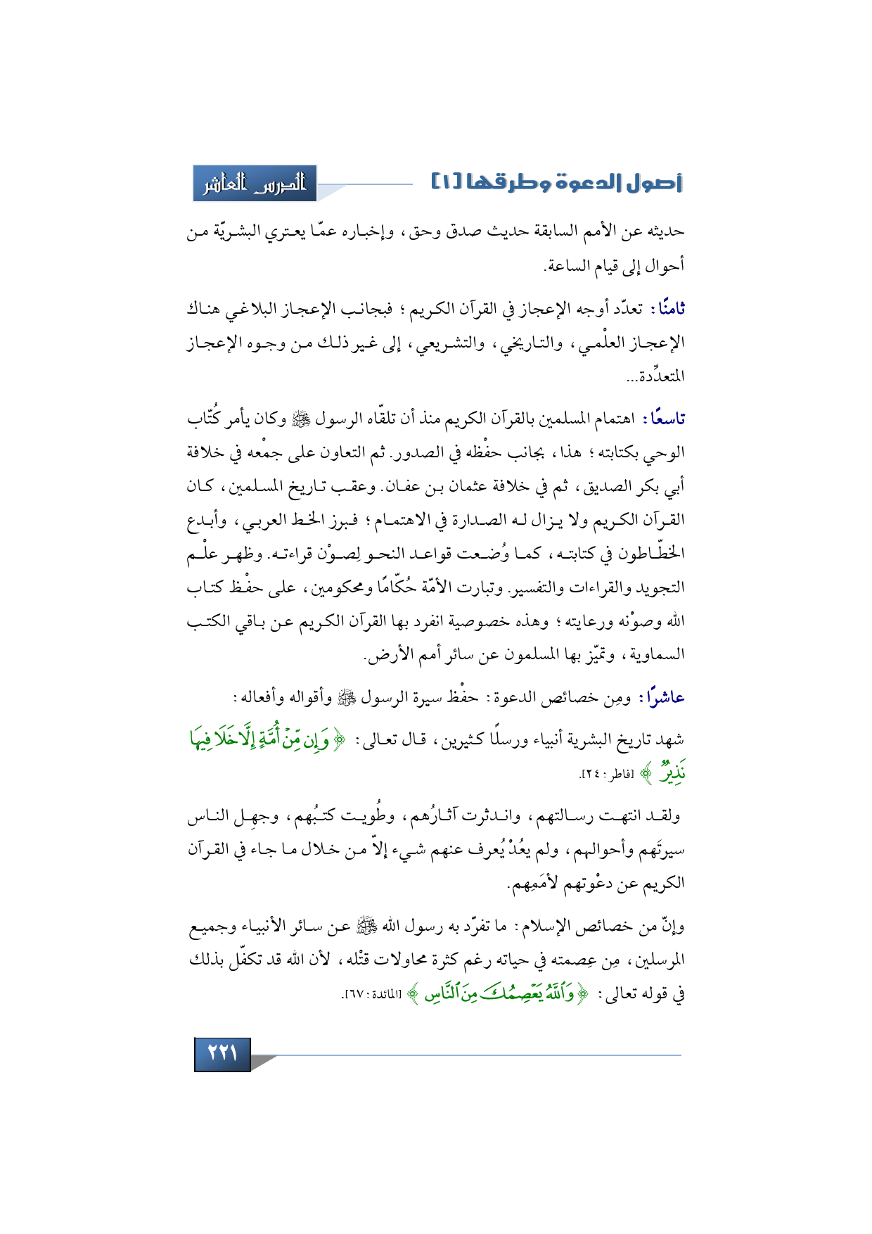 عاشراً: ومِن خصائص الدعوة: حفْظ سيرة الرسول -صلى الله عليه وسلم- وأقواله وأفعاله: