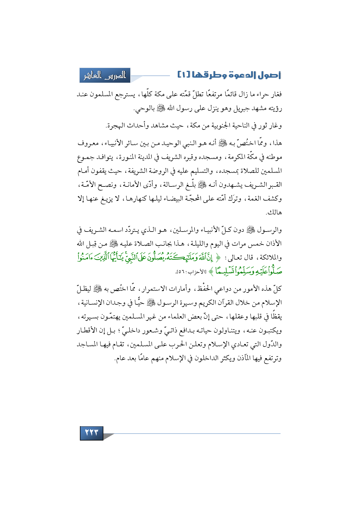 هذا، وممّا اختُصّ به -صلى الله عليه وسلم- أنه هو النبي الوحيد من بين سائر الأنبياء، معروف موطنه في مكّة المكرمة، ومسجده وقبره الشريف في المدينة المنورة، يتوافد جموع المسلمين للصلاة بمسجده، والتسليم عليه في الروضة الشريفة، حيث يقفون أمام القبر الشريف يشهدون أنه -صلى الله عليه وسلم- بلّغ الرسالة، وأدّى الأمانة، ونصح الأمّة، وكشف الغمة، وترَك أمّته على المحجّة البيضاء ليلها كنهارها، لا يزيغ عنها إلا هالك.
