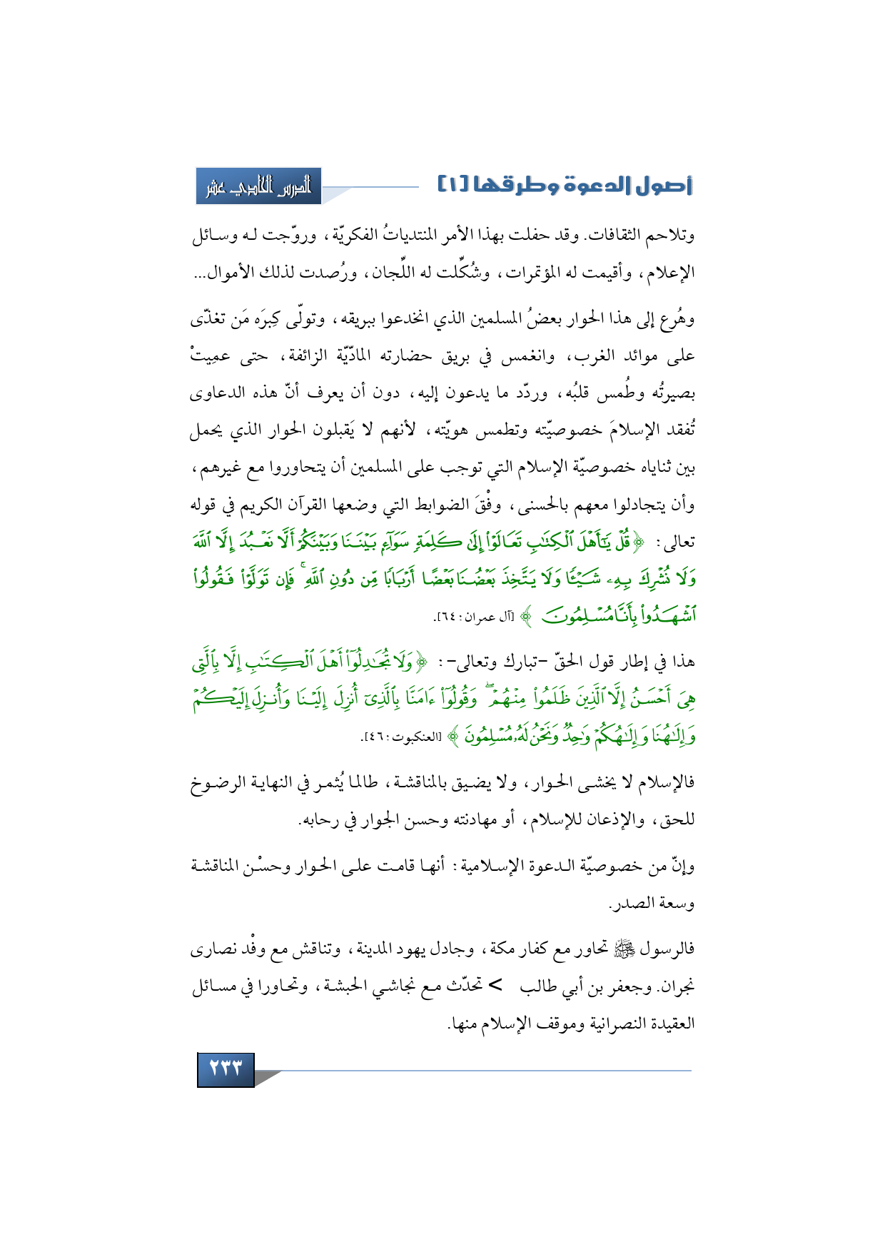 وإنّ من خصوصيّة الدعوة الإسلامية: أنها قامت على الحوار وحسْن المناقشة وسعة الصدر.