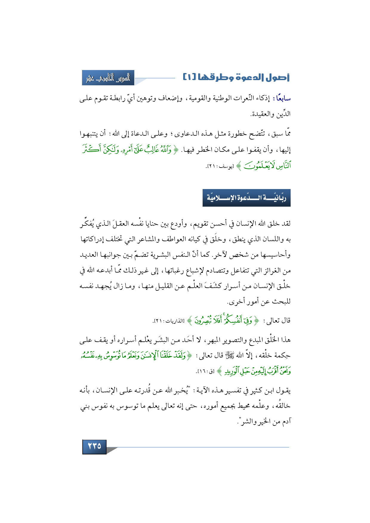 سابعاً: إذكاء النّعرات الوطنية والقومية، وإضعاف وتوهين أيّ رابطة تقوم على الدِّين والعقيدة.