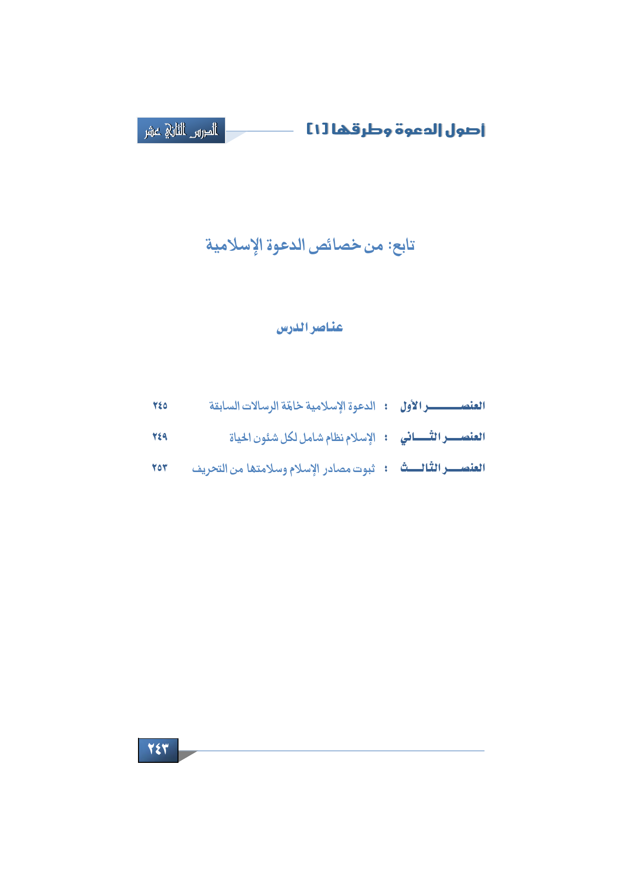 الدرس: 12 تابع: من خصائص الدعوة الإسلامية.
