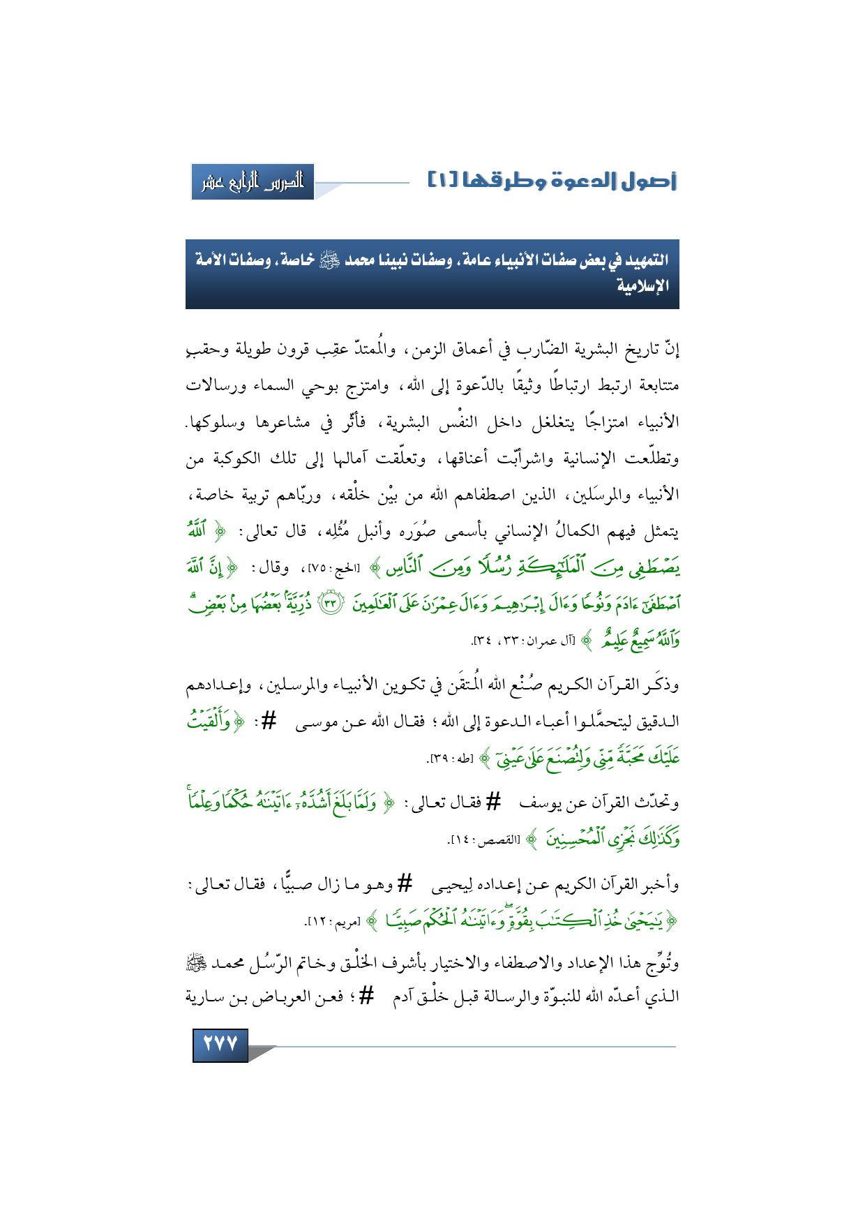 فإنّ تاريخ البشرية الضّارب في أعماق الزمن، والمُمتدّ عقِب قرون طويلة وحقبٍ متتابعة، ارتبط ارتباطاً وثيقاً بالدّعوة إلى الله، وامتزج بوحي السماء ورسالات الأنبياء، امتزاجاً بتغلغل داخل النفْس البشرية، فأثّر في مشاعرها وسلوكها. وتطلّعت الإنسانية واشرأبّت أعناقها، وتعلّقت آمالها إلى تلك الكوكبة من الأنبياء والمرسَلين، الذين اصطفاهم الله من بيْن خلْقه، وربّاهم تربية خاصة، يتمثل فيهم الكمالُ الإنساني بأسمى صُوَره وأنبل مُثُلِه، قال تعالى: {اللَّهُ يَصْطَفِي مِنَ الْمَلائِكَةِ رُسُلاً وَمِنَ النَّاسِ} (الحج:75).