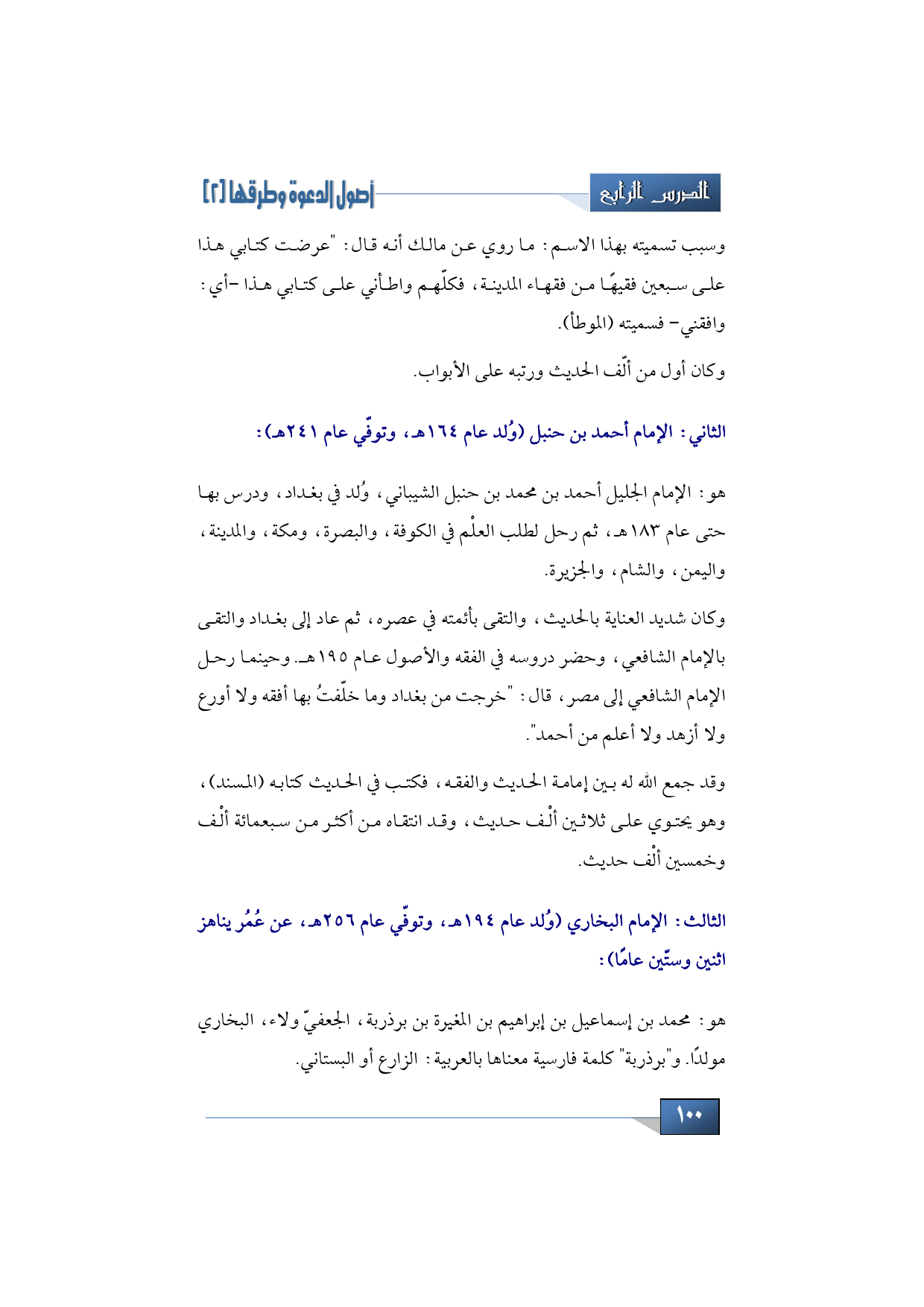 ثانيا: الإمام أحمد بن حنبل: وُلد عام 164هـ، وتوفّي عام 241هـ.