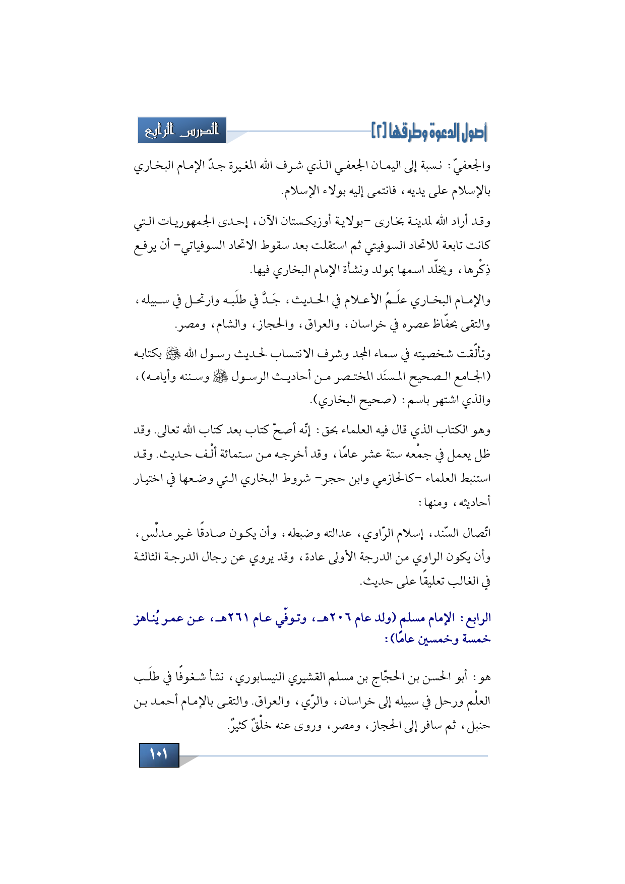 رابعاً: الإمام مسلم: مولده عام 206هـ، وتوفّي عام 261هـ، عن عمر يُناهز خمسة وخمسين عاماً.