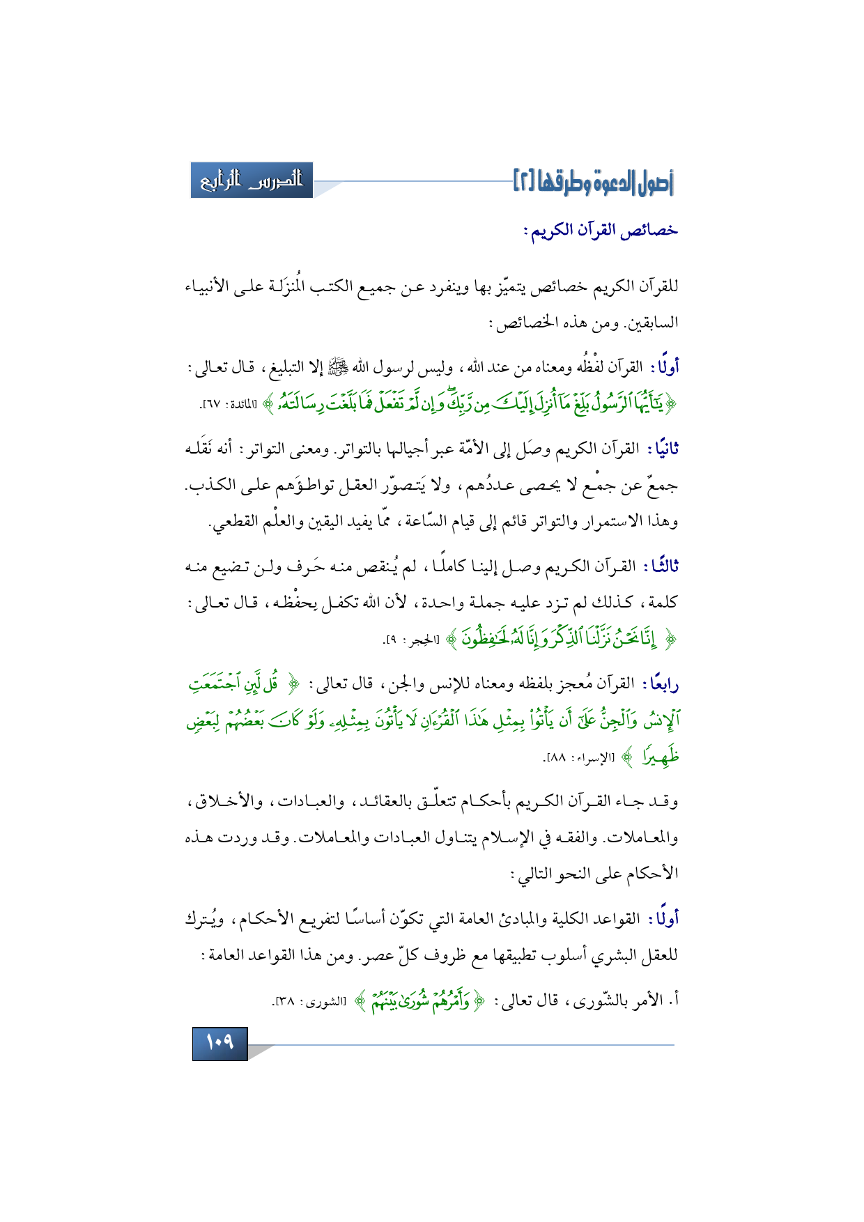 1 - القرآن لفْظُه ومعناه من عند الله، وليس لرسول الله -صلى الله عليه وسلم- سوى التبليغ، قال تعالى: {يَا أَيُّهَا الرَّسُولُ بَلِّغْ مَا أُنْزِلَ إِلَيْكَ مِنْ رَبِّكَ وَإِنْ لَمْ تَفْعَلْ فَمَا بَلَّغْتَ رِسَالَتَهُ}.