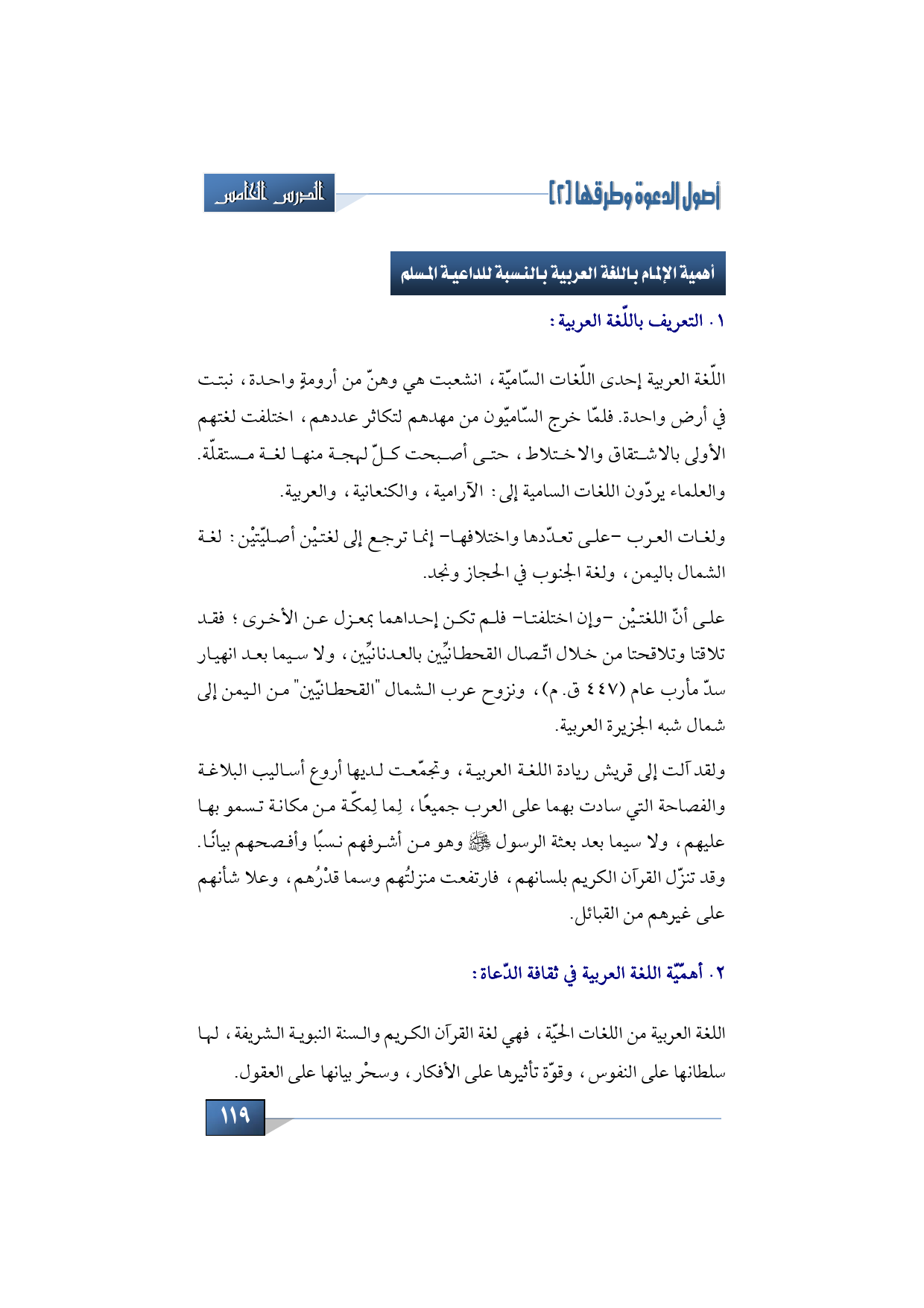 أهمّيّة اللغة العربية في ثقافة الدّعاة: