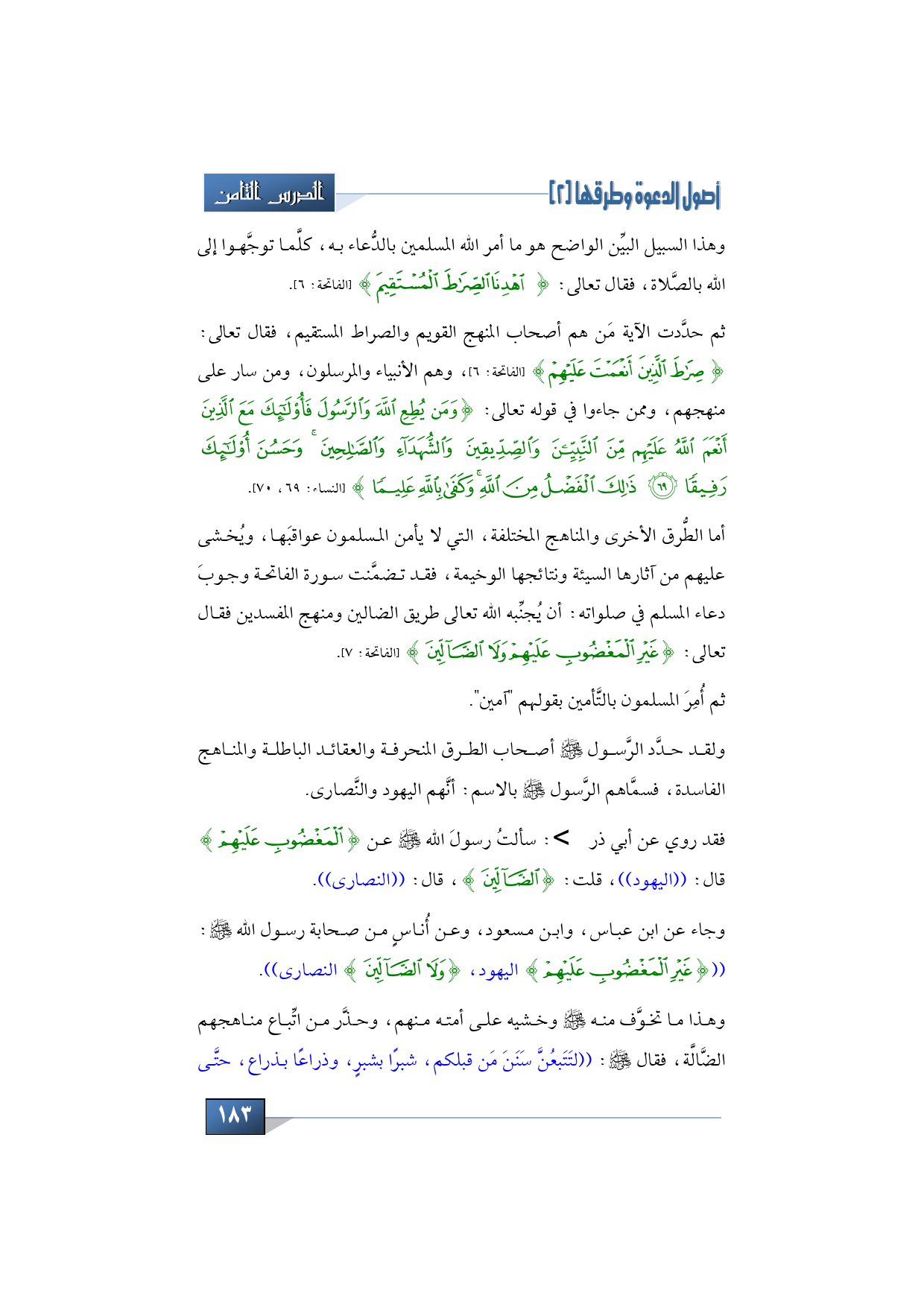 وهذا السبيل البيِّن الواضح، هو ما أمر الله المسلمين بالدُّعاء به، كلَّما توجَّهوا إلى الله بالصَّلاة، فقال تعالى: