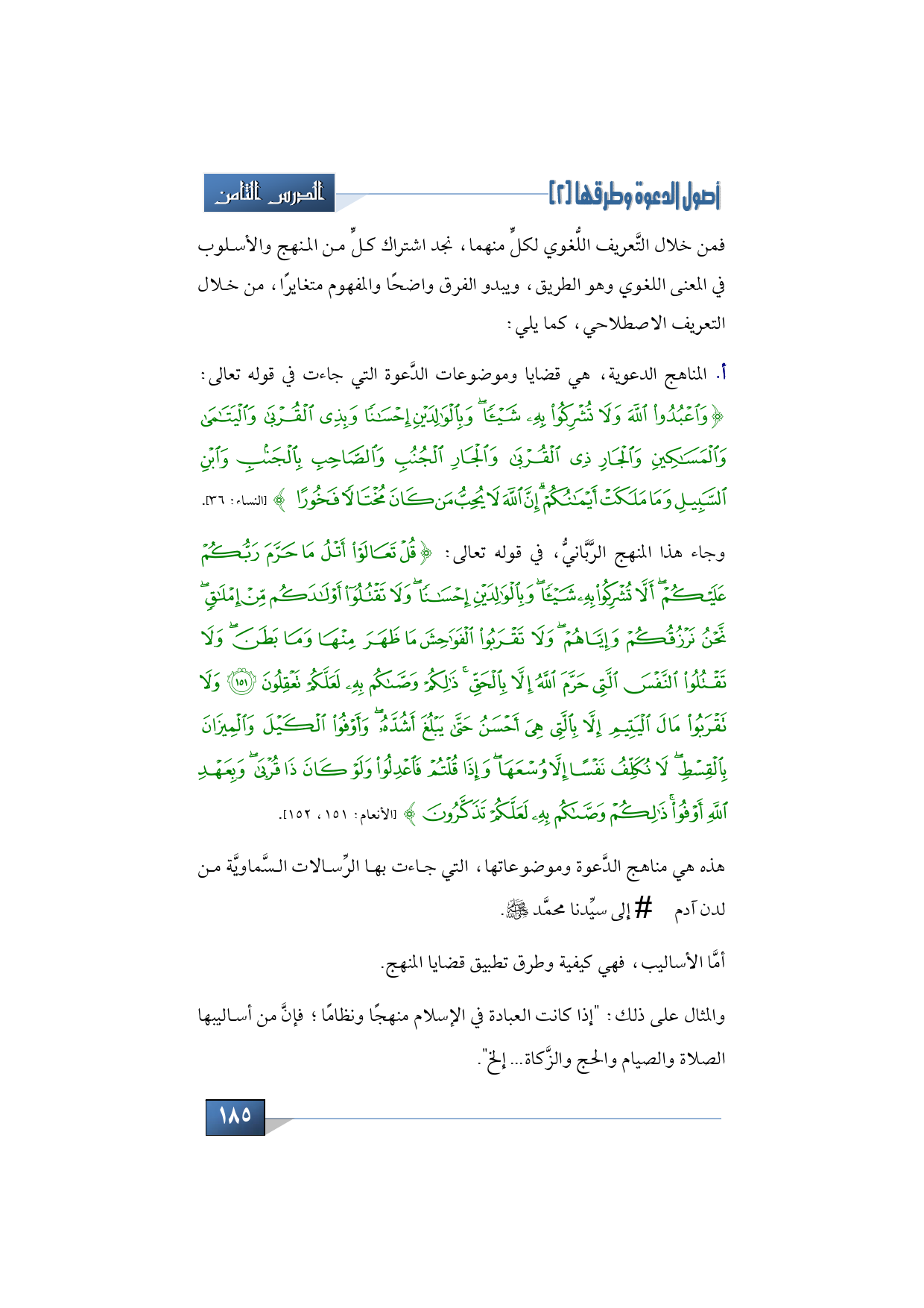 أولاً: المناهج الدعوية، هي قضايا وموضوعات الدَّعوة التي جاءت في قوله تعالى: