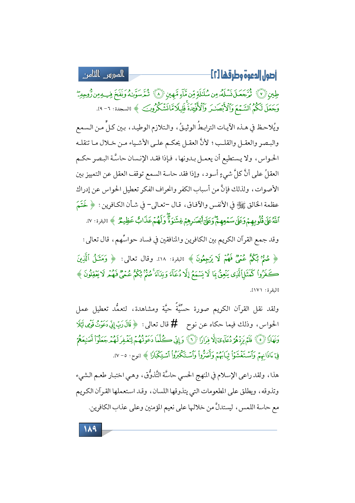 وقد جمع القرآن الكريم بين الكافرين والمنافقين في فساد حواسِّهم، قال تعالى: