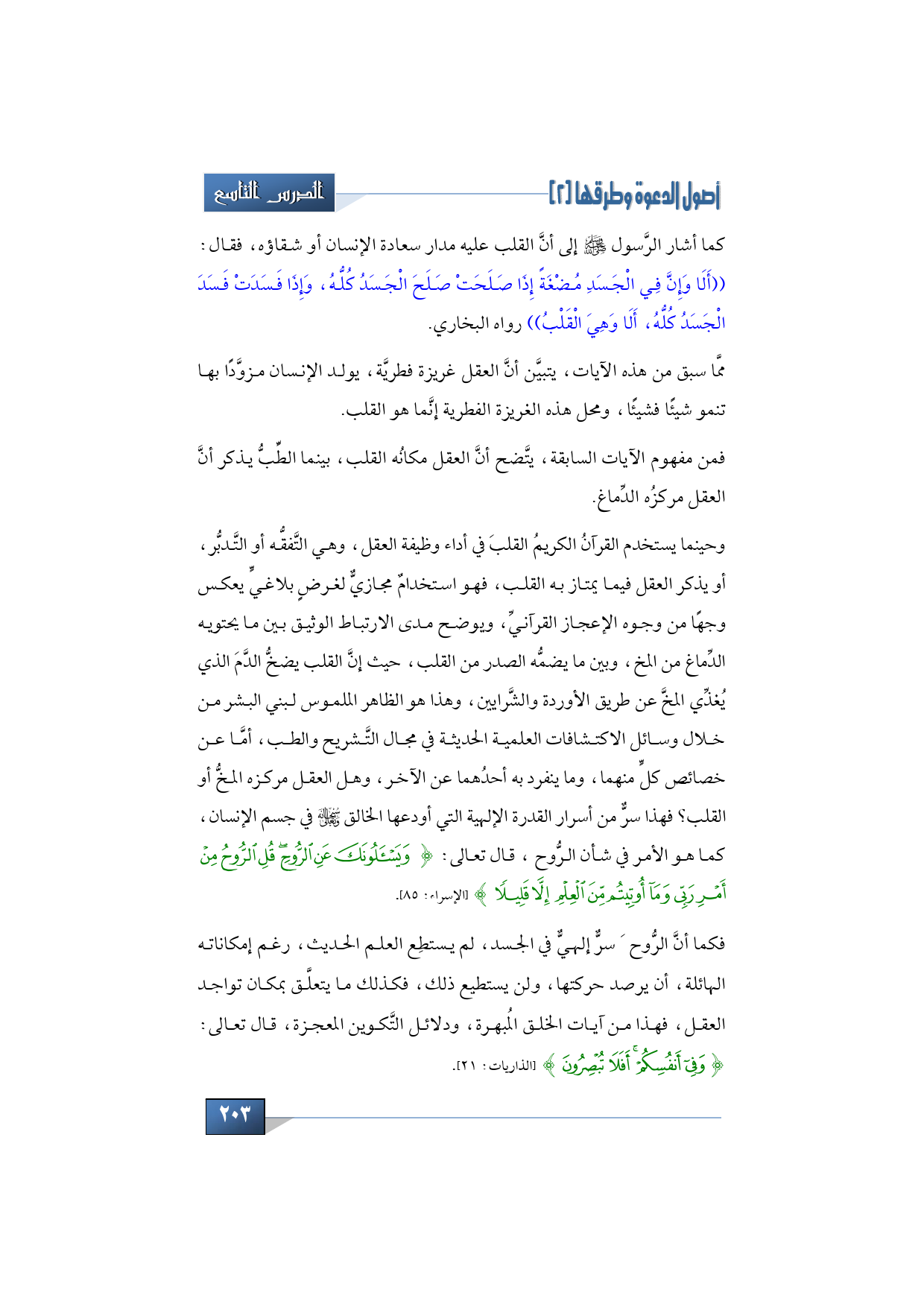 فمن مفهوم الآيات السابقة، يتَّضح أنَّ العقل مكانُه القلب، بينما الطِّبُّ يذكر أنَّ العقل مركزُه الدِّماغ.